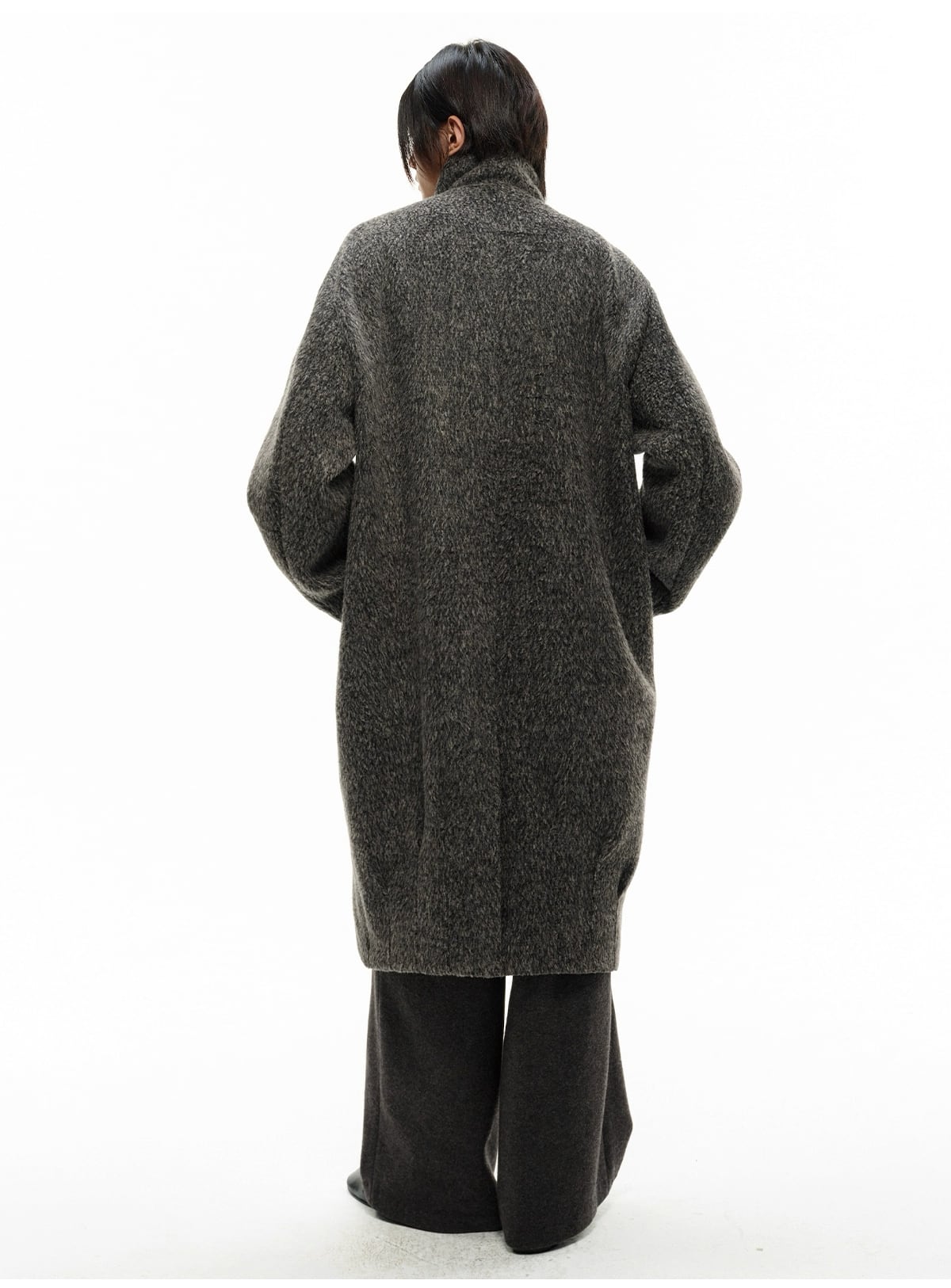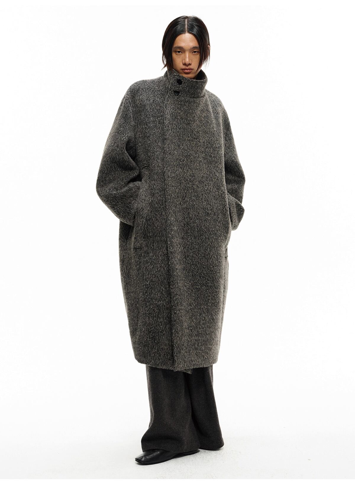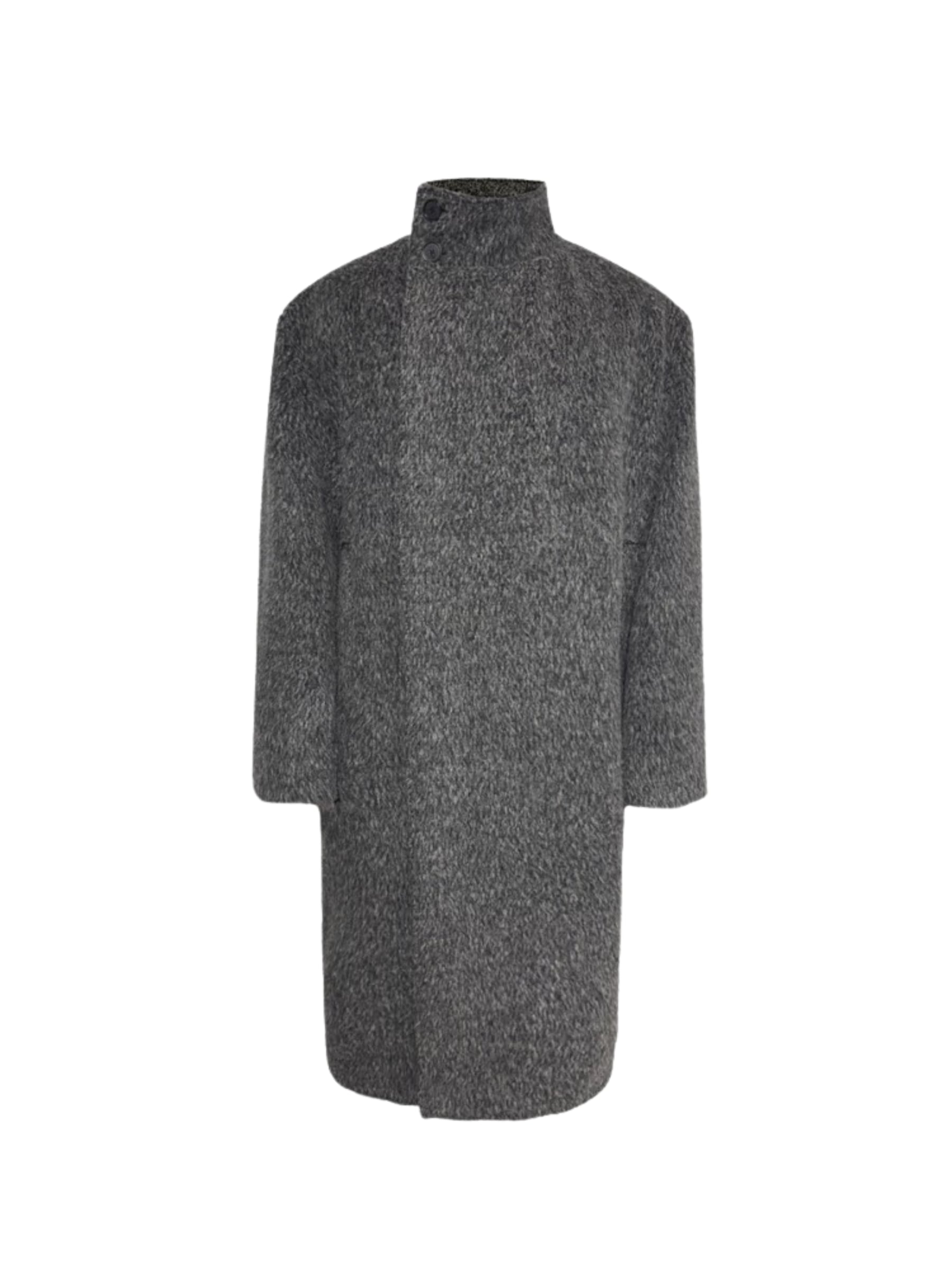 ヘザーグレーの深みある色合いと、しっかりとした厚みのあるヘビーウェイトな質感が魅力のロングコート。