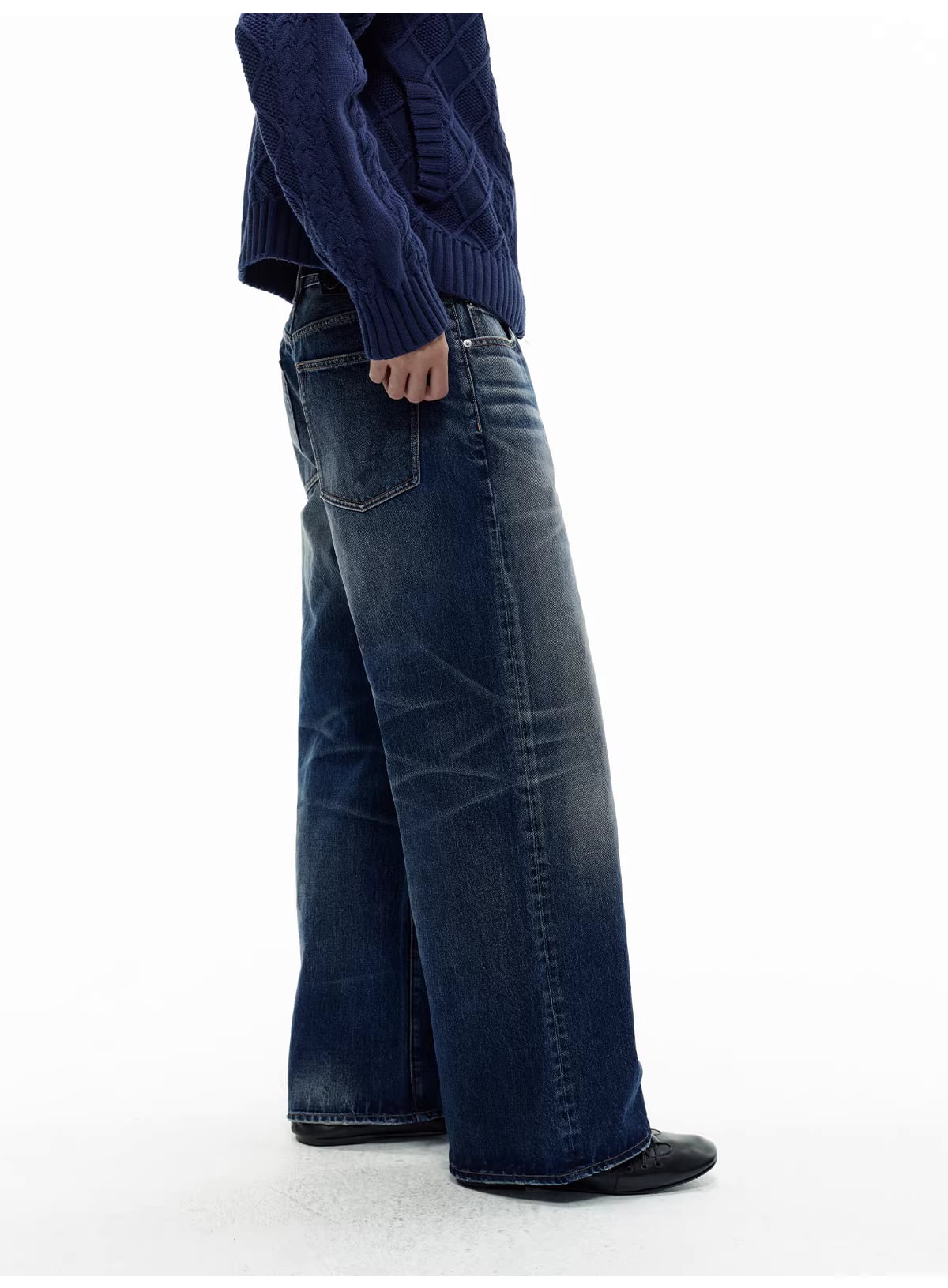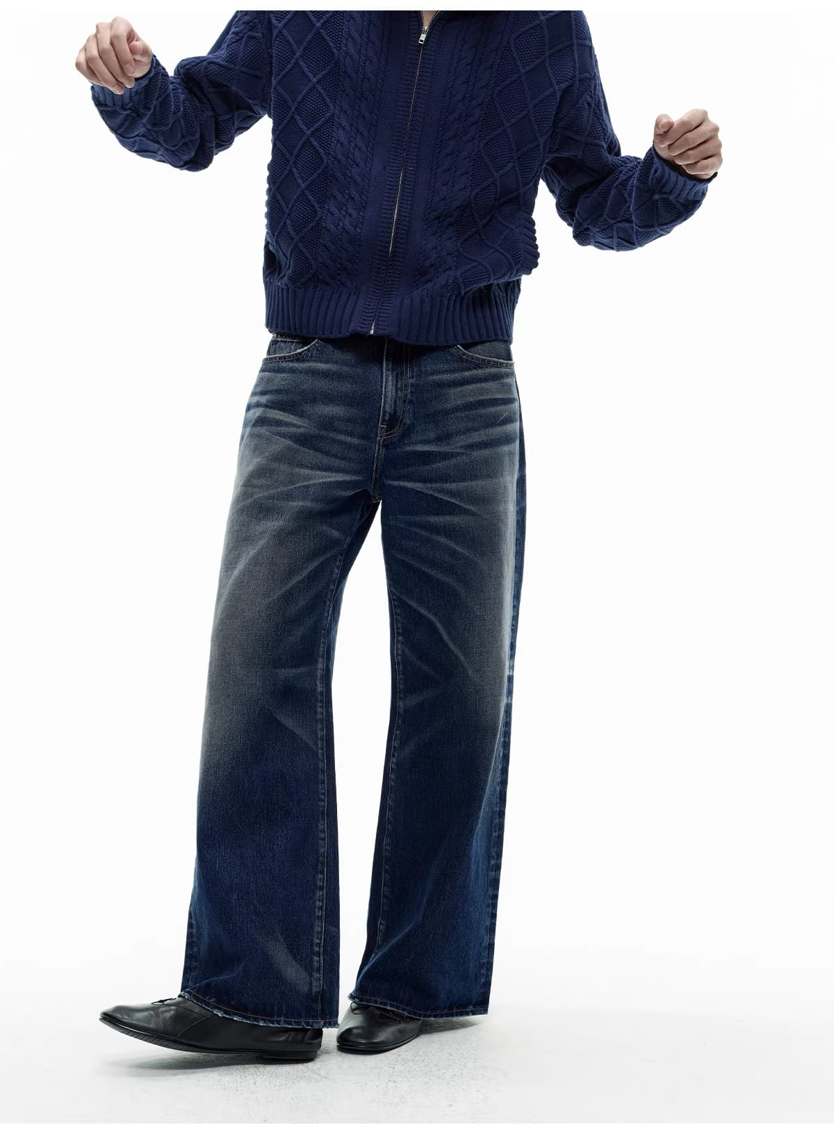 幾重にも及ぶこだわりのウォッシュ加工により、深みのあるインディゴブルーの中に、ヴィンテージデニムのような自然なヒゲ(ウィスカー)や色落ちをリアルに再現。