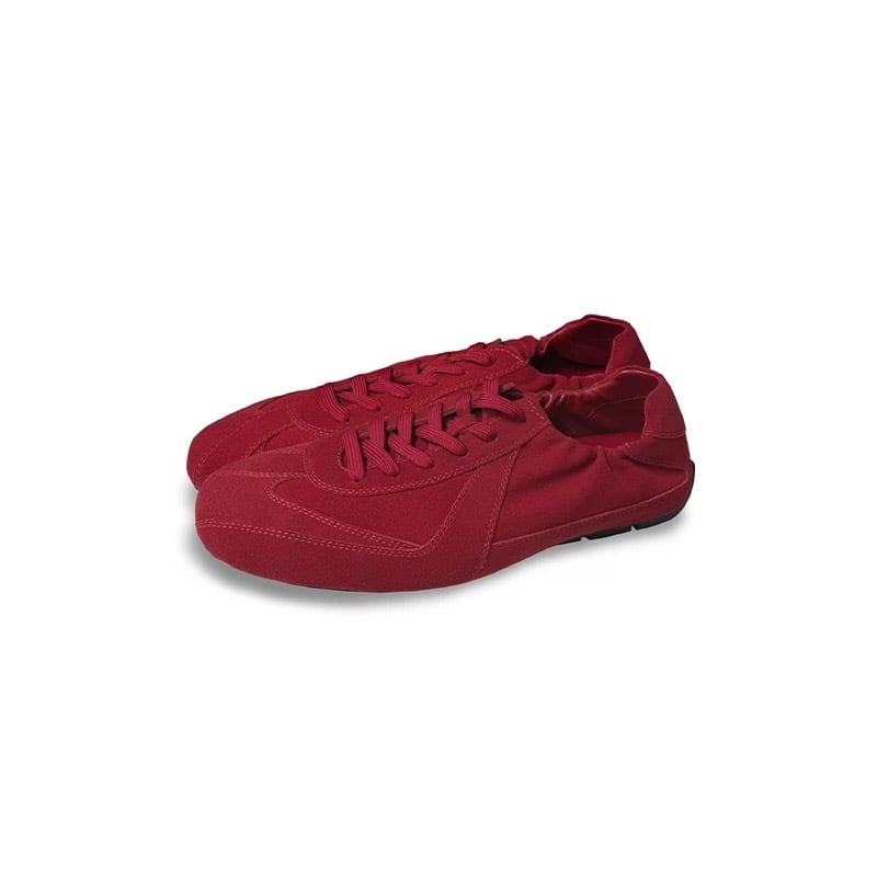 最大の特徴は、かかとの履き口部分に施された独自のギャザーデザインで、着脱をスムーズにするだけでなく、足首周りにユニークな表情を与えます。