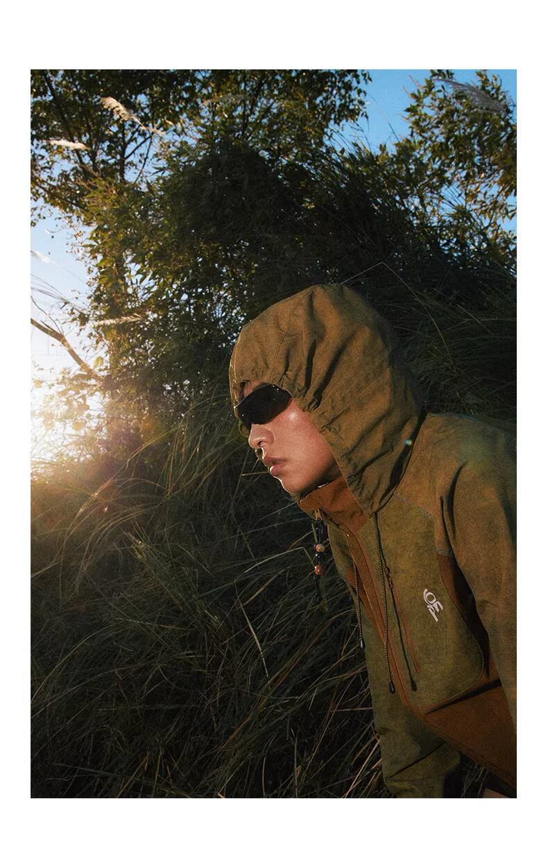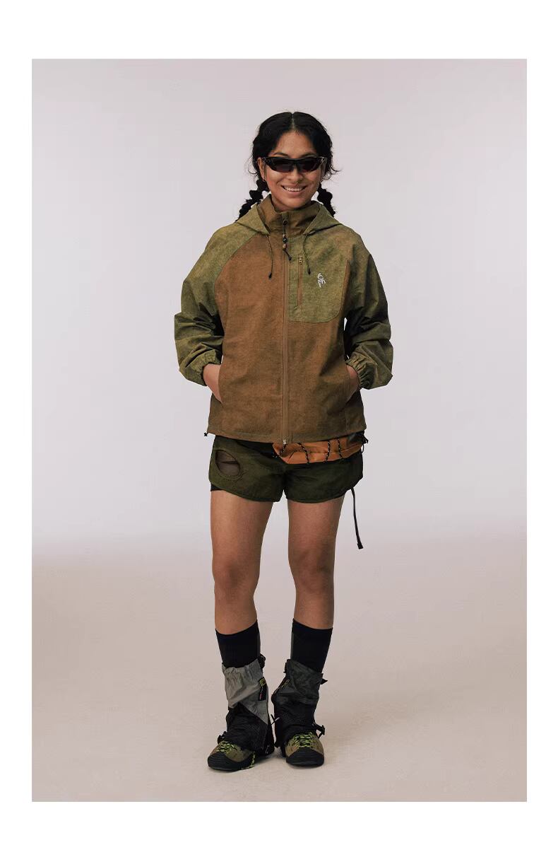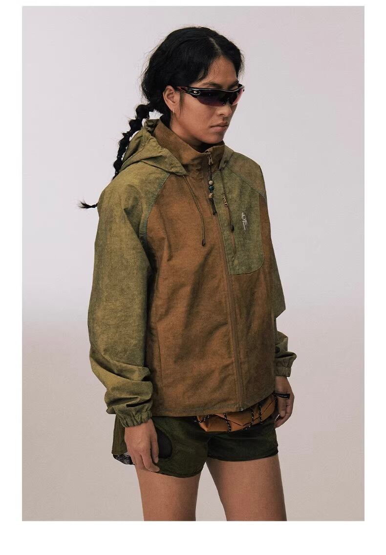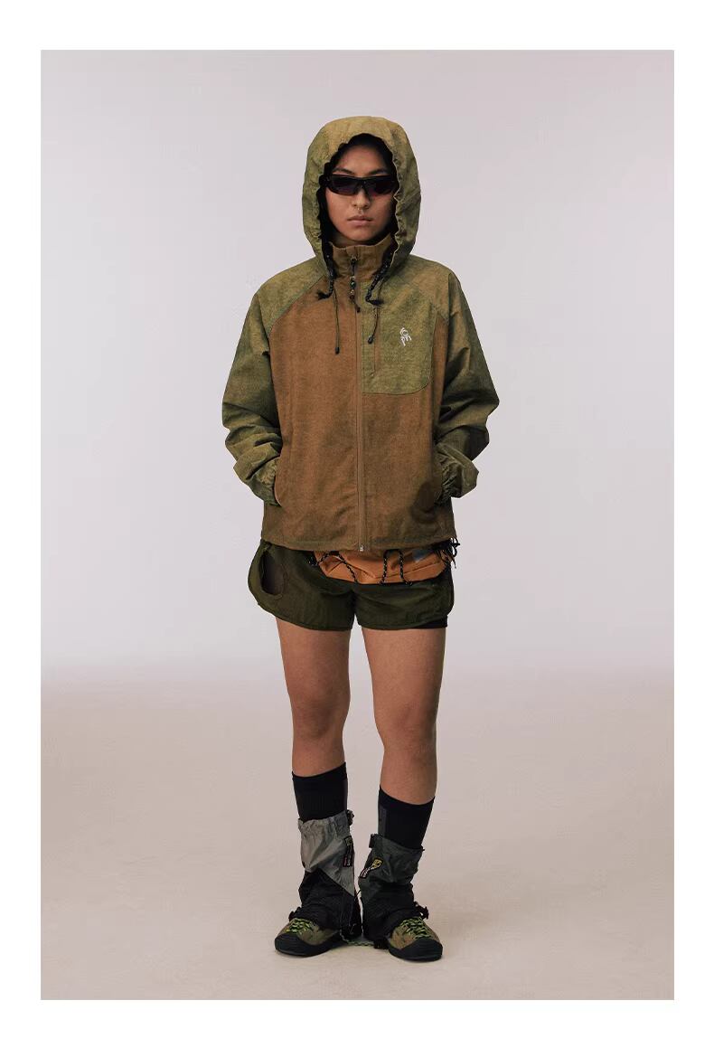 25AWコレクションより、アースカラーのタイダイパターンが自然な陰影を生み出す、存在感抜群のフード付きナイロンジャケット。