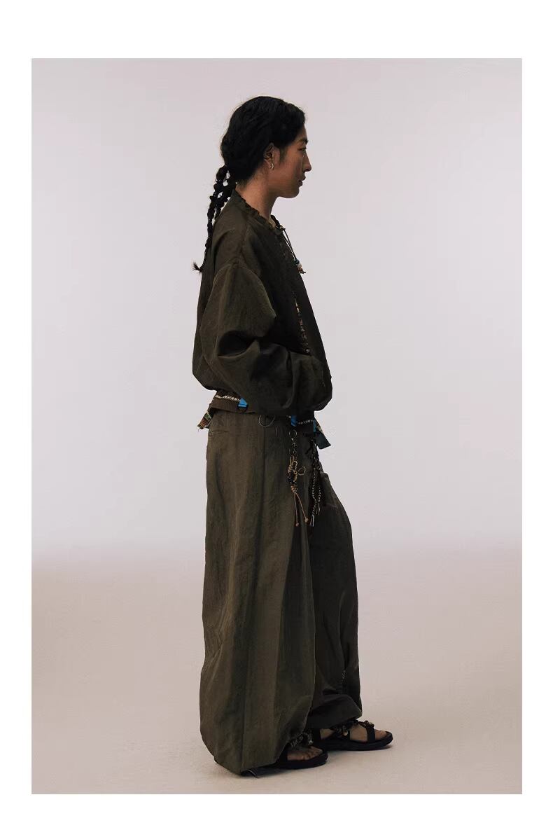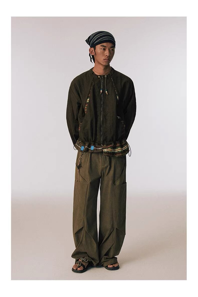ゆったりとしたルーズなシルエットで、機能性と芸術的なデザインが見事に融合した、他にはない存在感を放つ一着。
