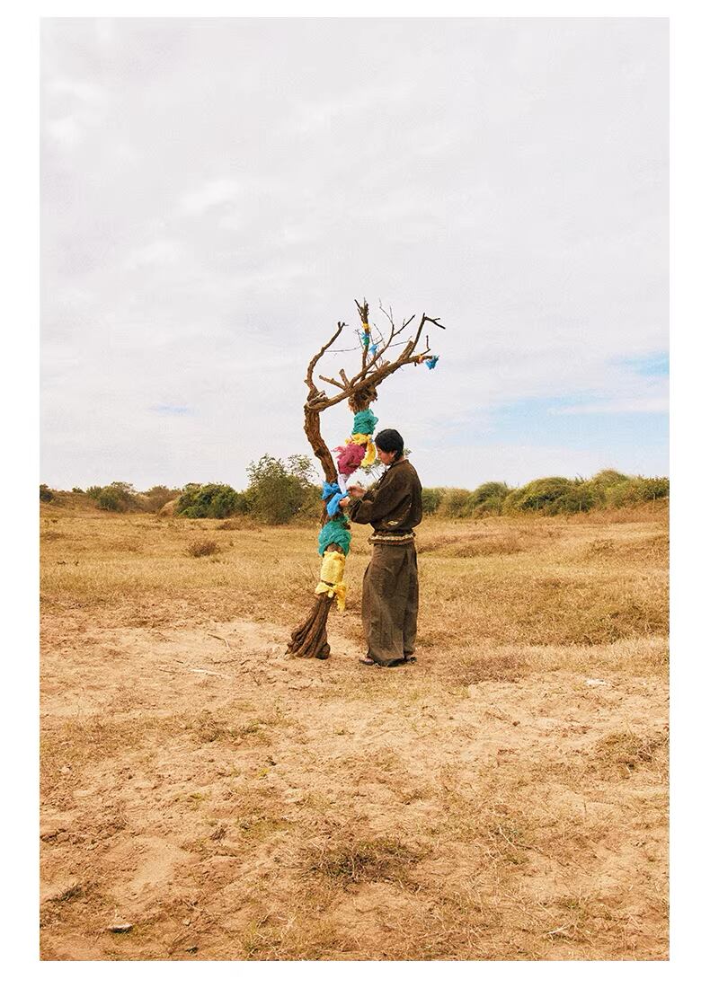 最大の特徴は、前身頃やサイドに大胆に施された民族調のファブリックによる不規則なパッチワークデザイン。