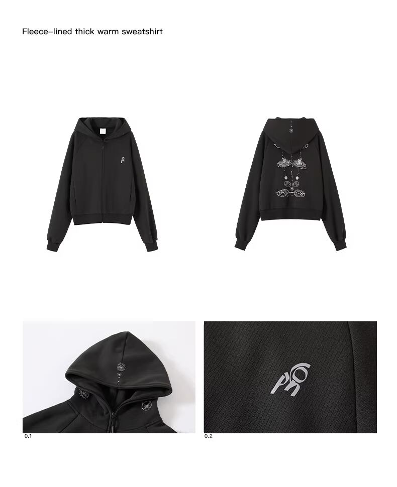 2025年秋冬コレクションの新作で、保温性に優れた厚手の裏起毛素材を使用したフーディージャケット。