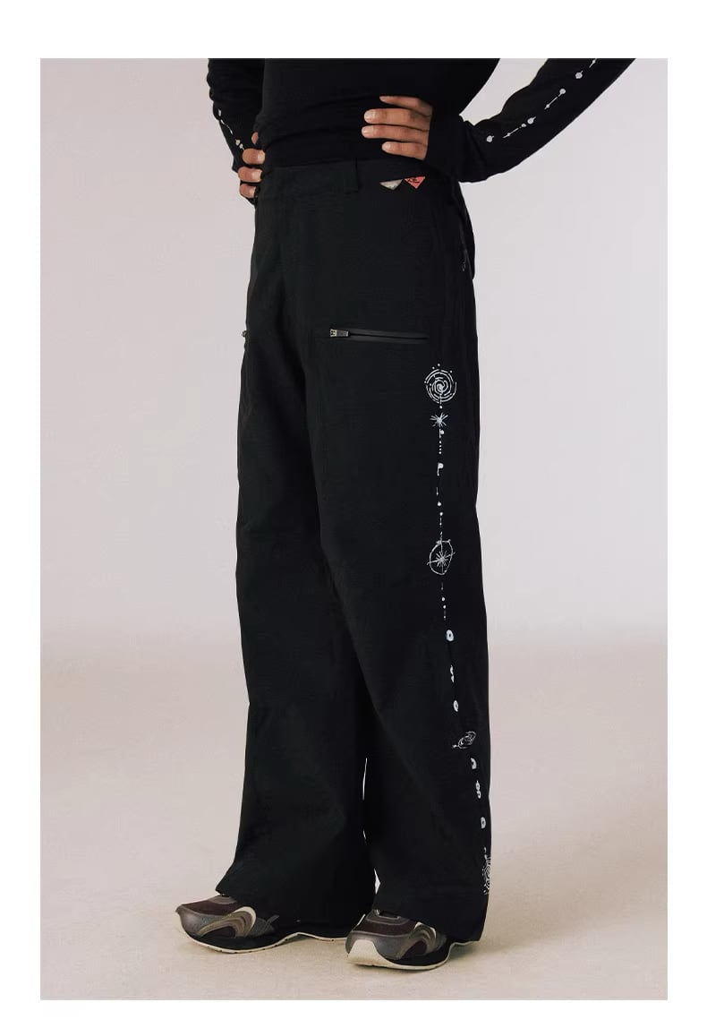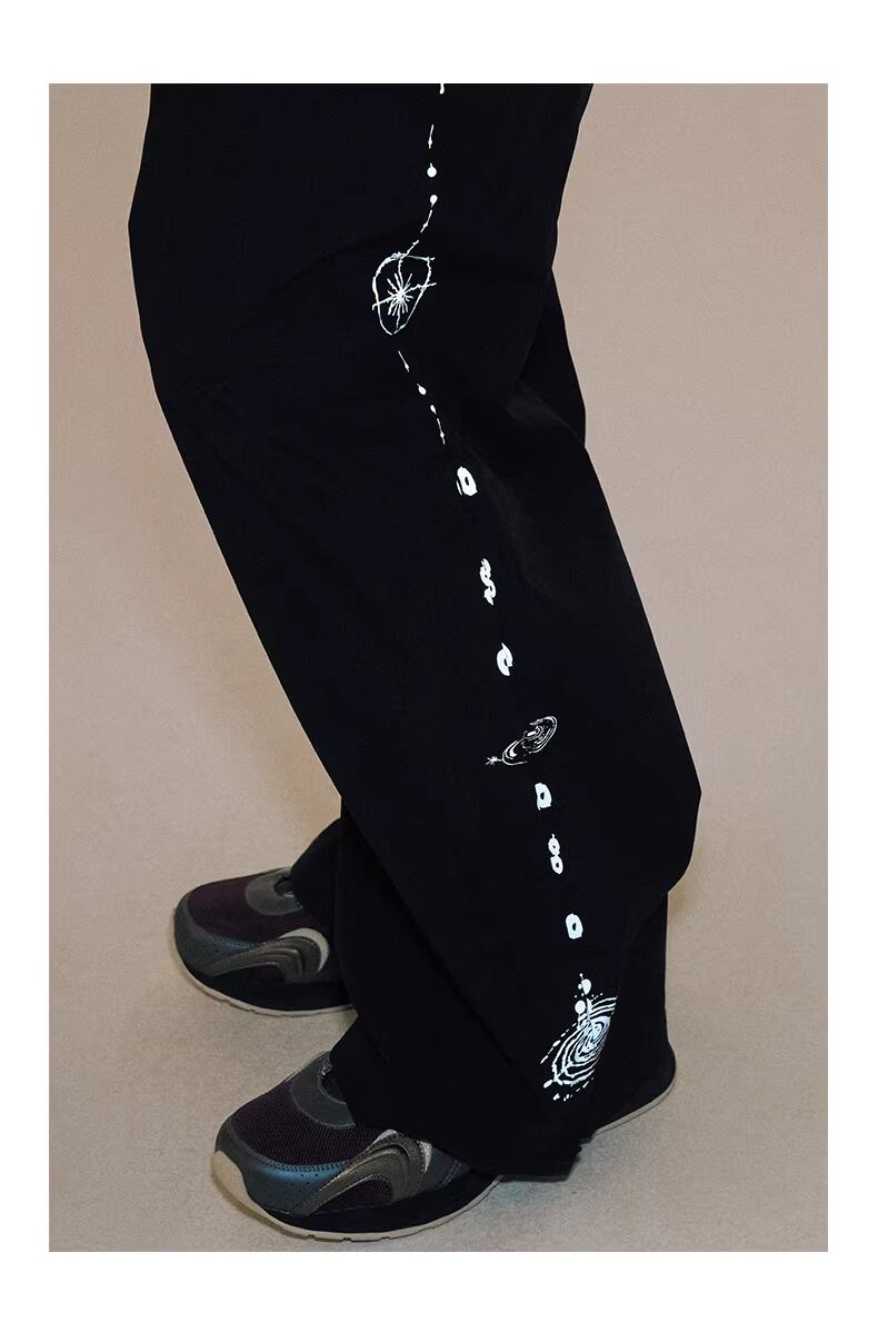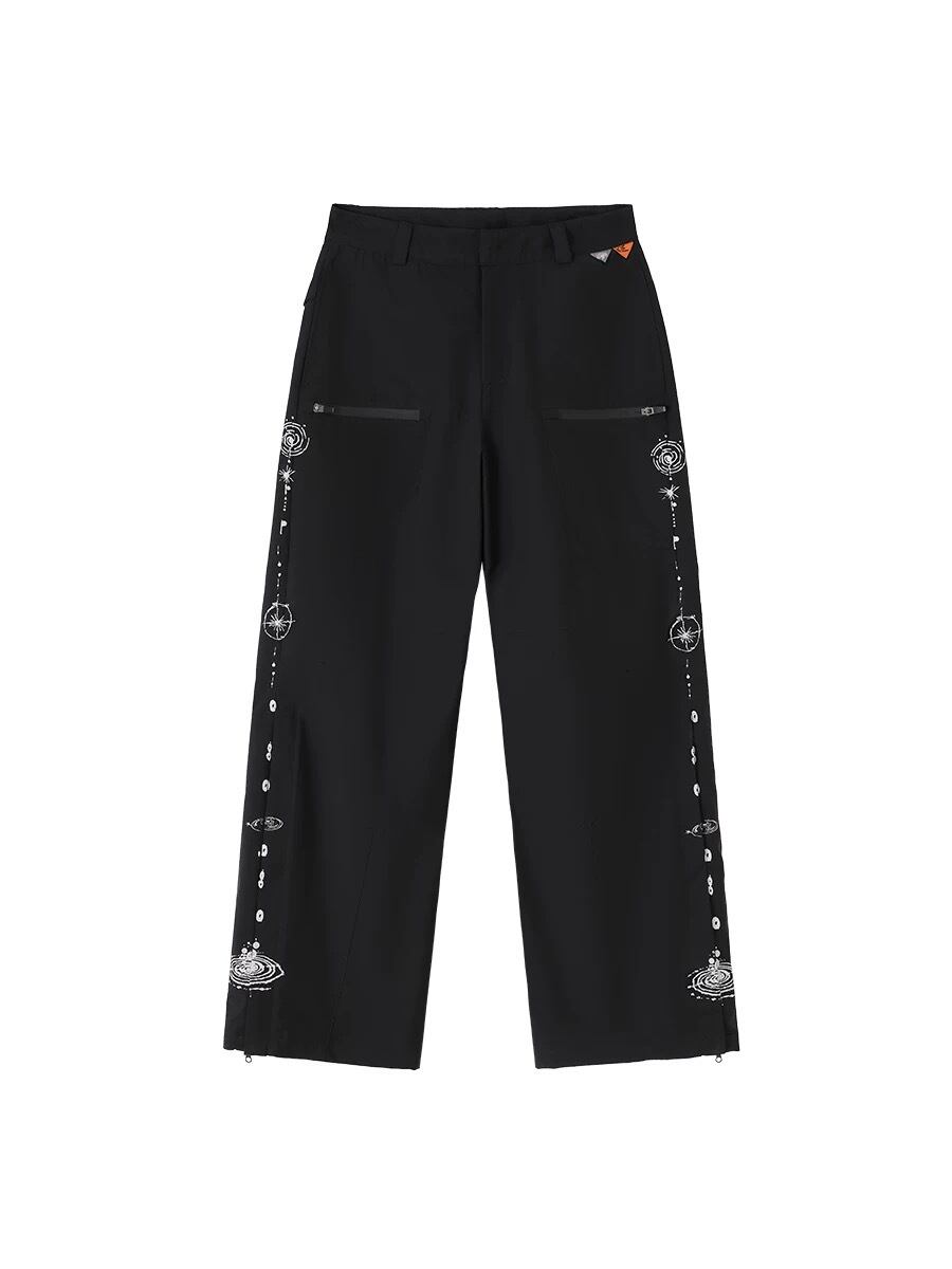 サイドには宇宙の軌道をイメージした繊細なグラフィックプリントが施されており、テックウェアとしての機能美とデザイン性を融合させています。