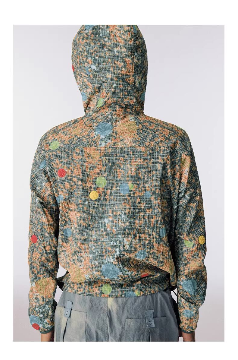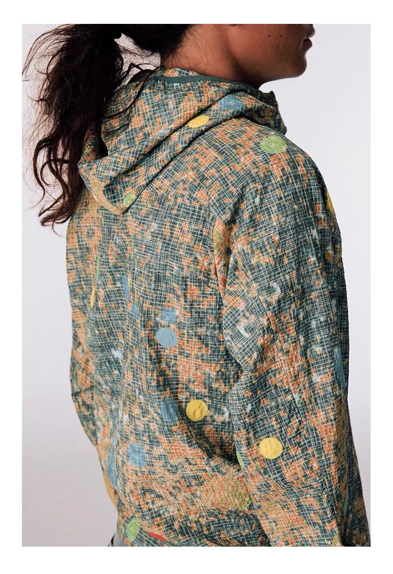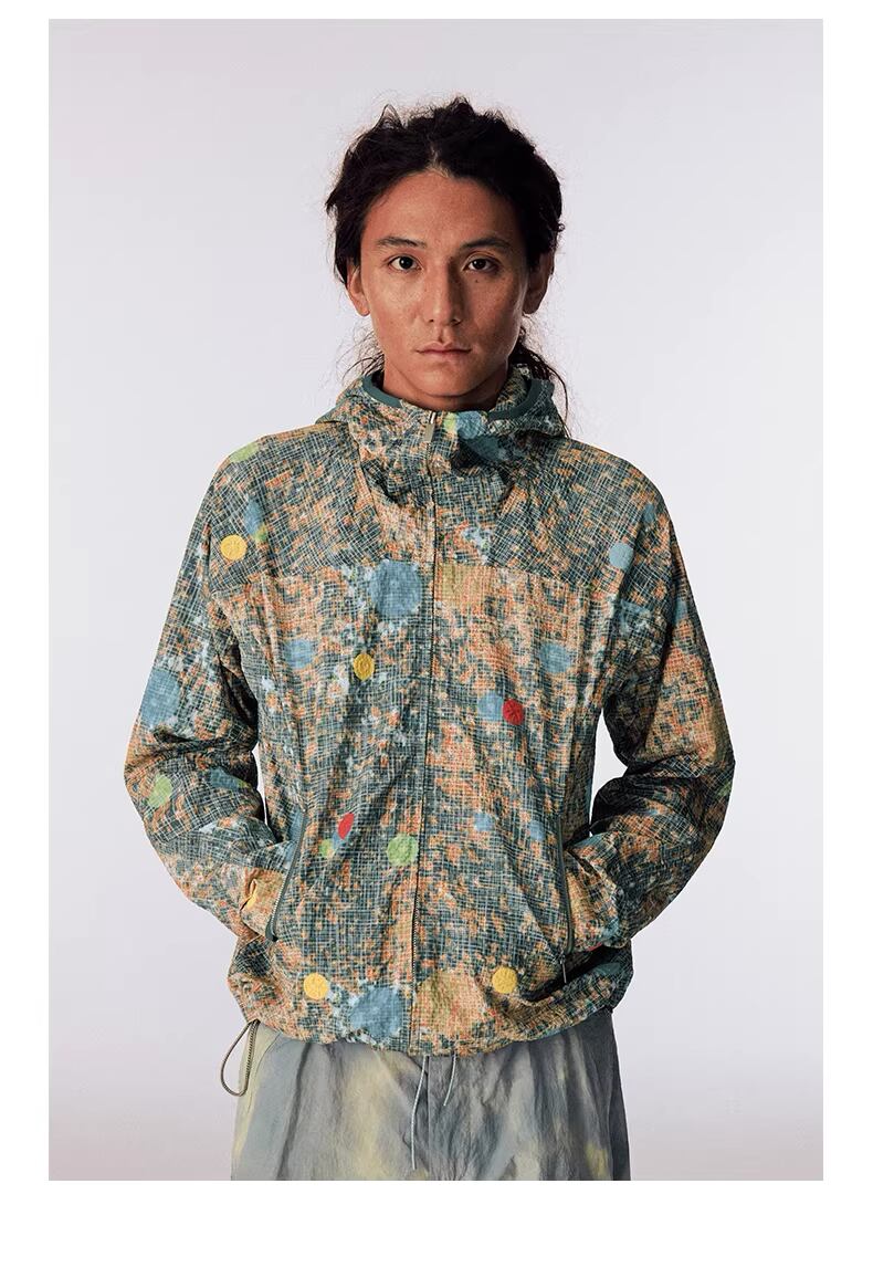 自然界の構造を模したような複雑なパターンが、テックウェアの無機質な印象に温かみと奥行きを加えています。