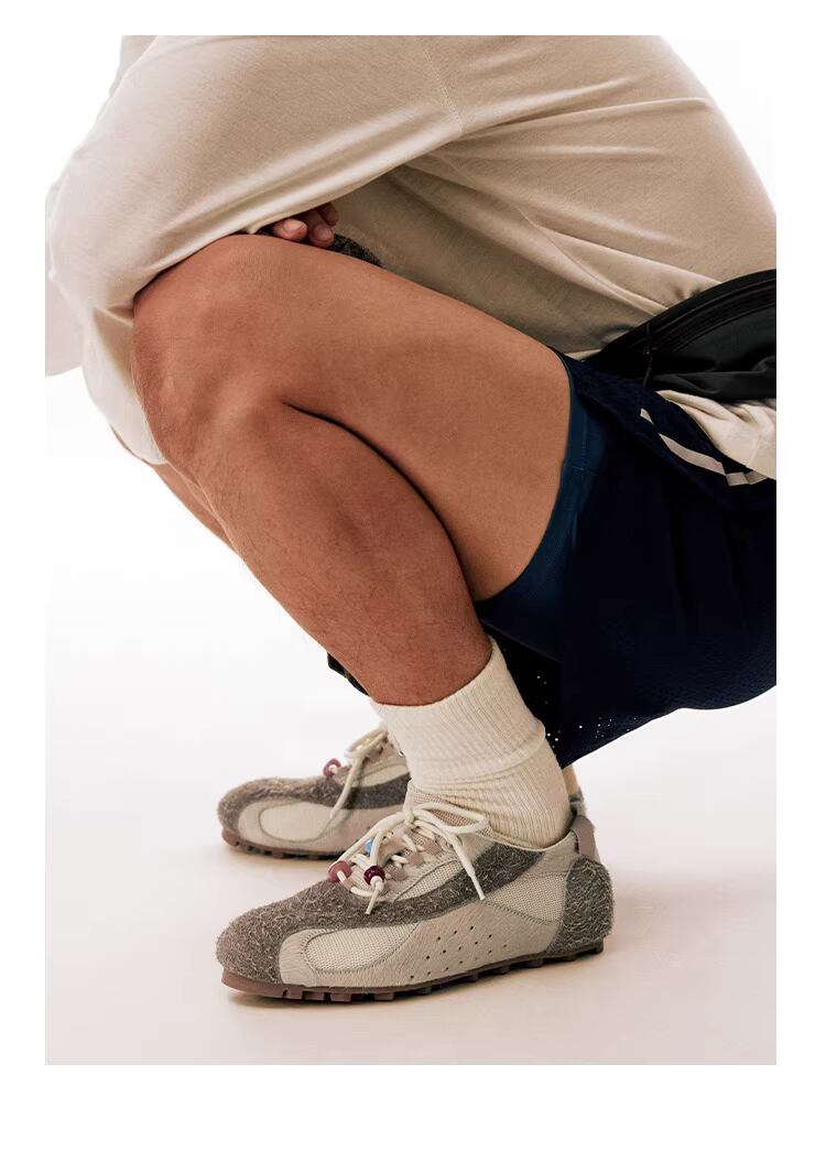 アッパーにはテクスチャーのあるファブリック素材を使用し、ソールは薄型で非常に軽量な設計となっており、まるで素足のような軽快な履き心地を実現。