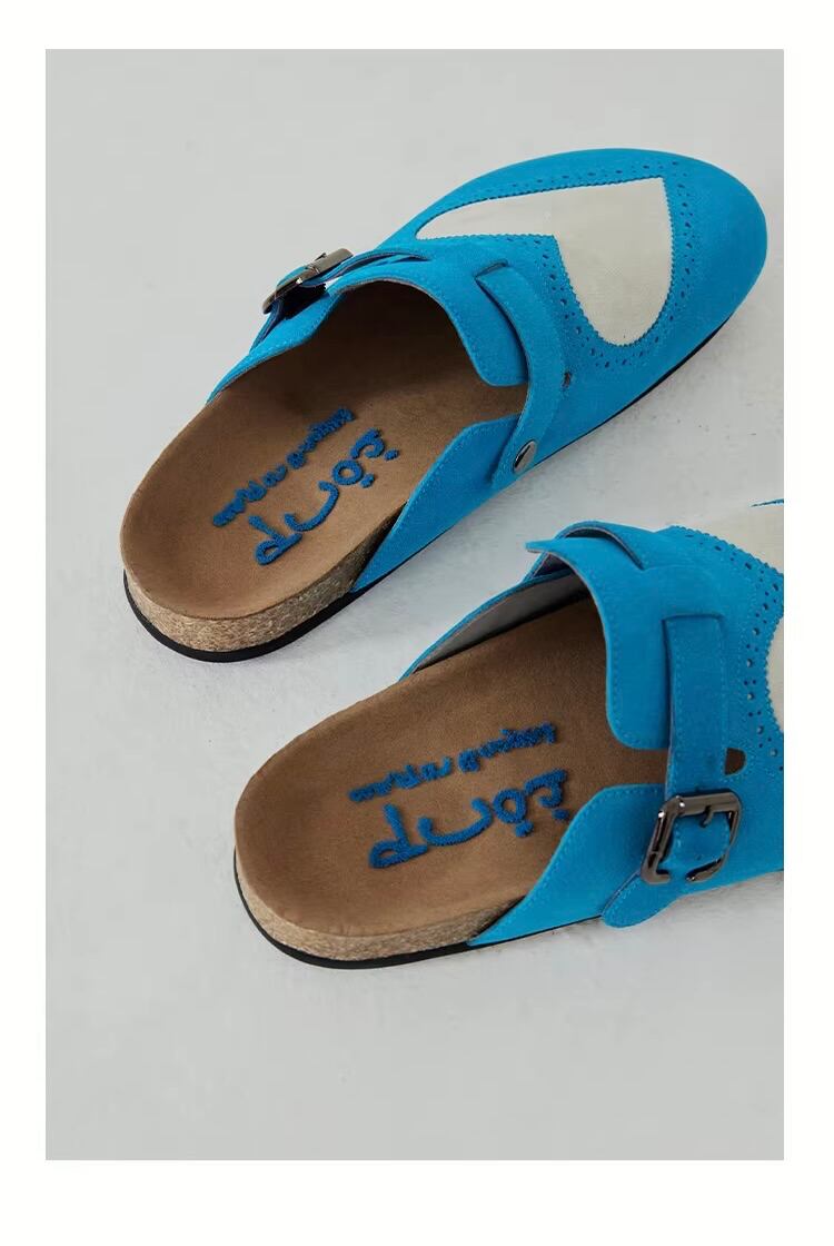 鮮やかなブルーのスエード素材が目を惹くサボサンダル(クロッグシューズ)。