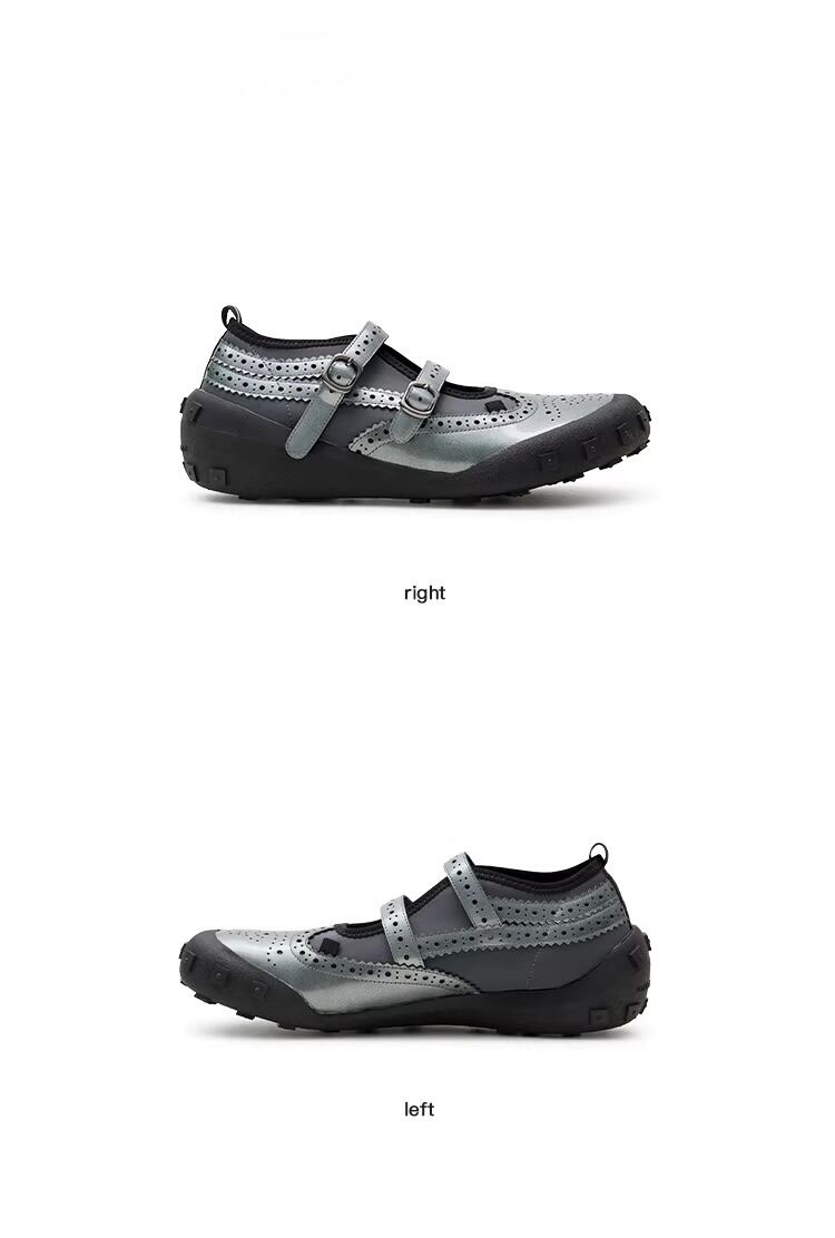 クラシックなマリージェーンシューズにアウトドアの要素を大胆に取り入れたハイブリッドな一足です。