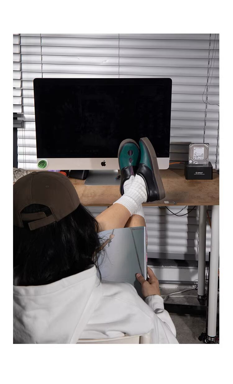 シューレースのないスリッポンタイプを採用しており、スムーズな着脱とミニマルなルックスを実現しています。