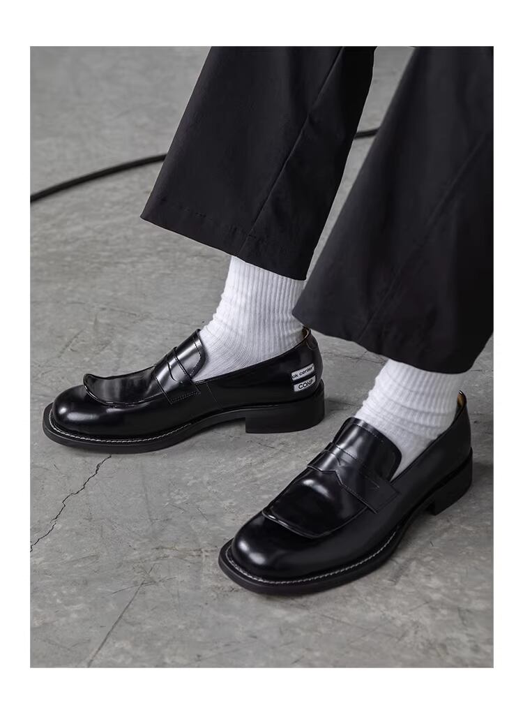 アッパーには光沢感のあるブラックの「ポリッシュドレザー/ガラスレザー)」を使用しており、履き込むほどに足に馴染み、柔らかくなる経年変化を楽しめます。
