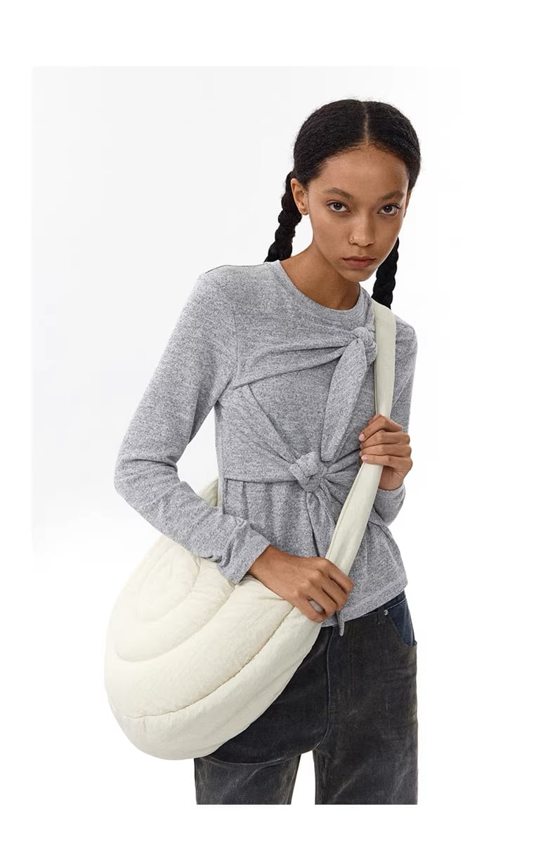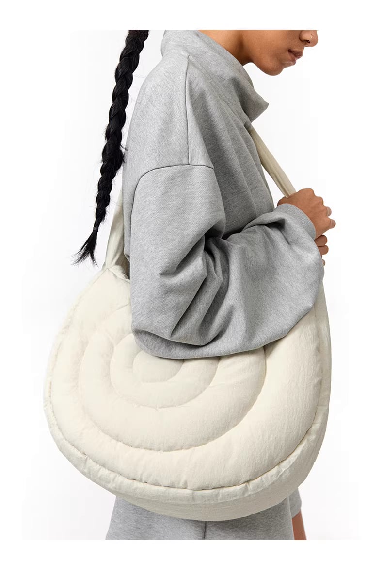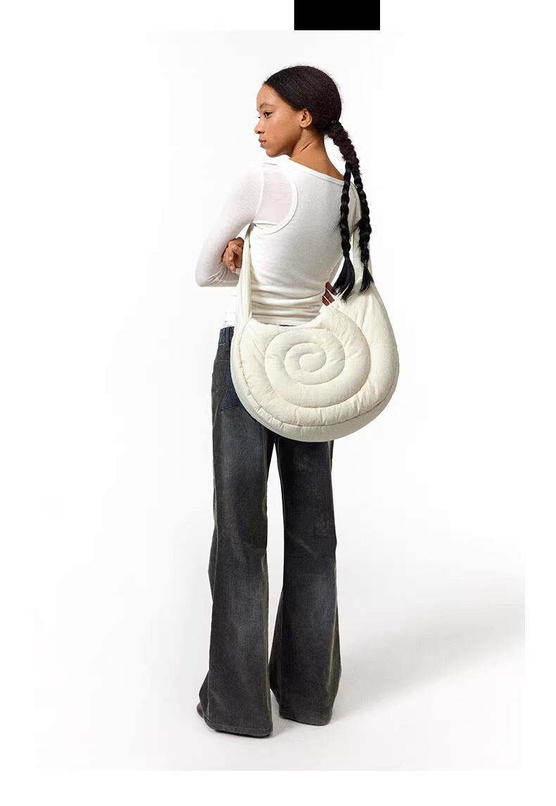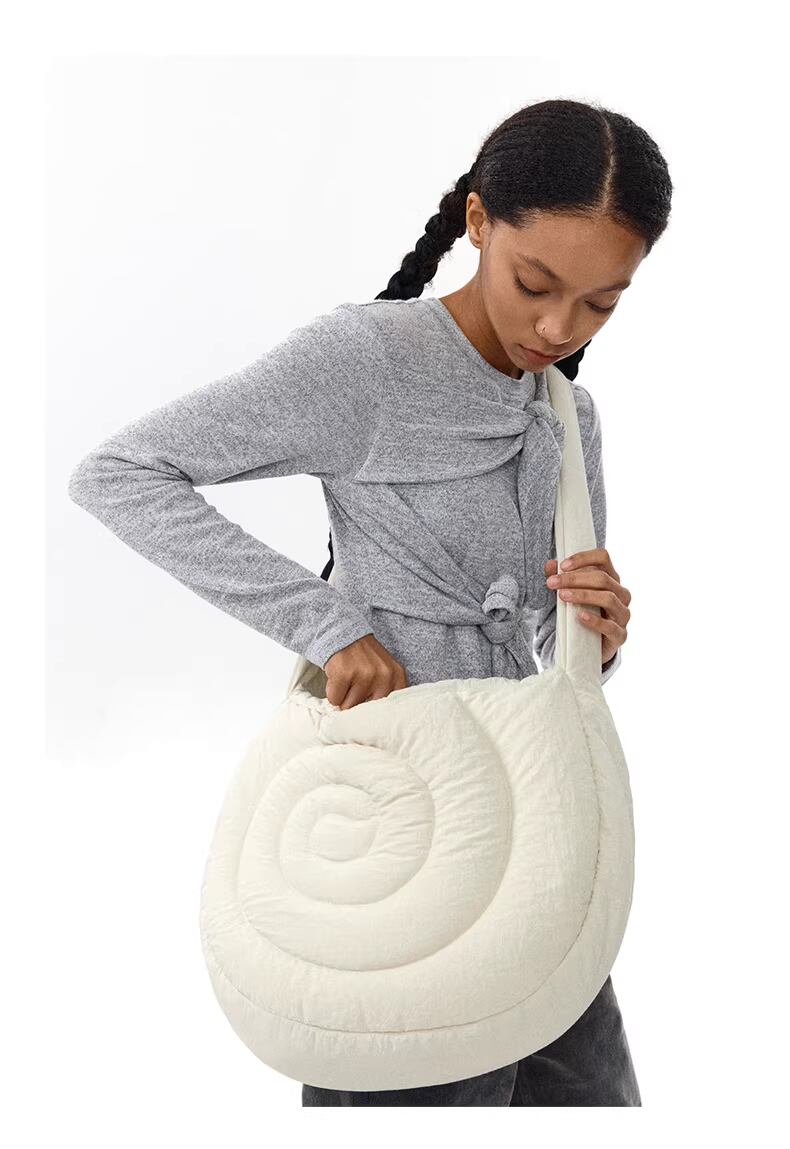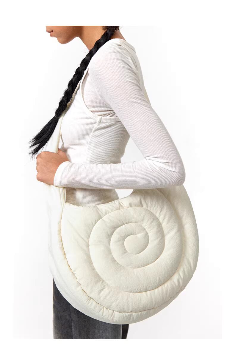 「カタツムリ(Snail)」の殻のような渦巻き状のキルティングステッチがユニークなショルダーバッグ。