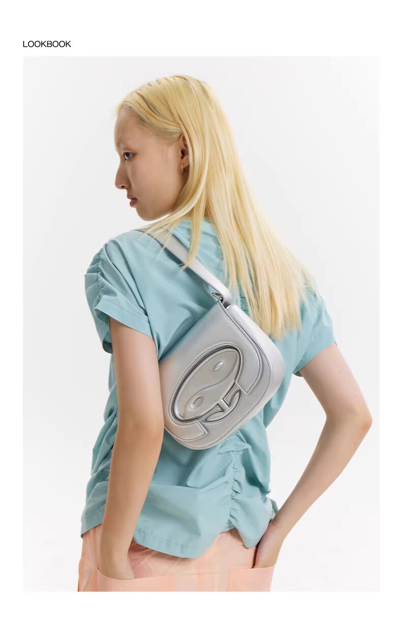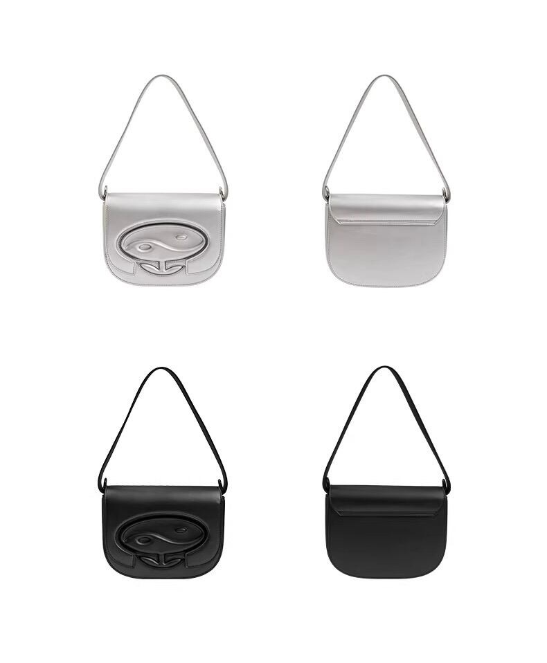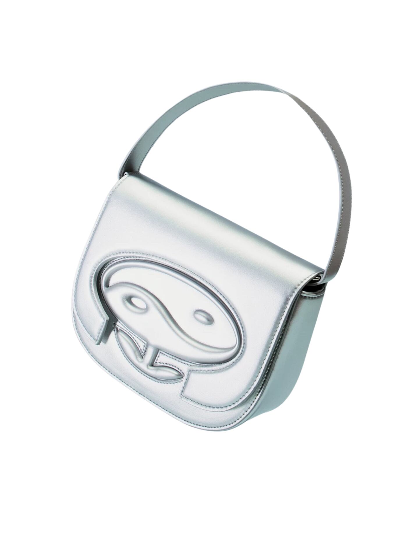 「太極(Tai Chi)」と「小花」を融合させた抽象的なエンボス加工(浮き彫り)が特徴のショルダーバッグ。