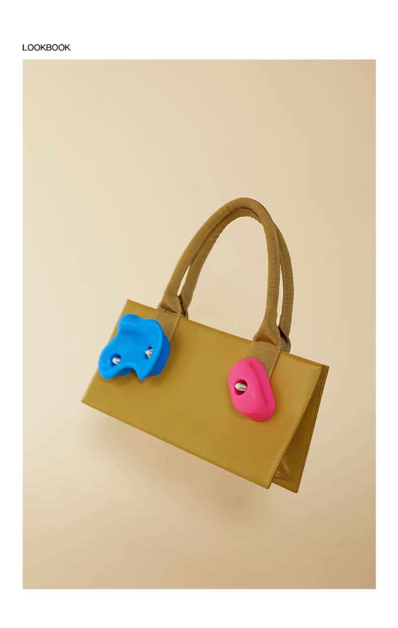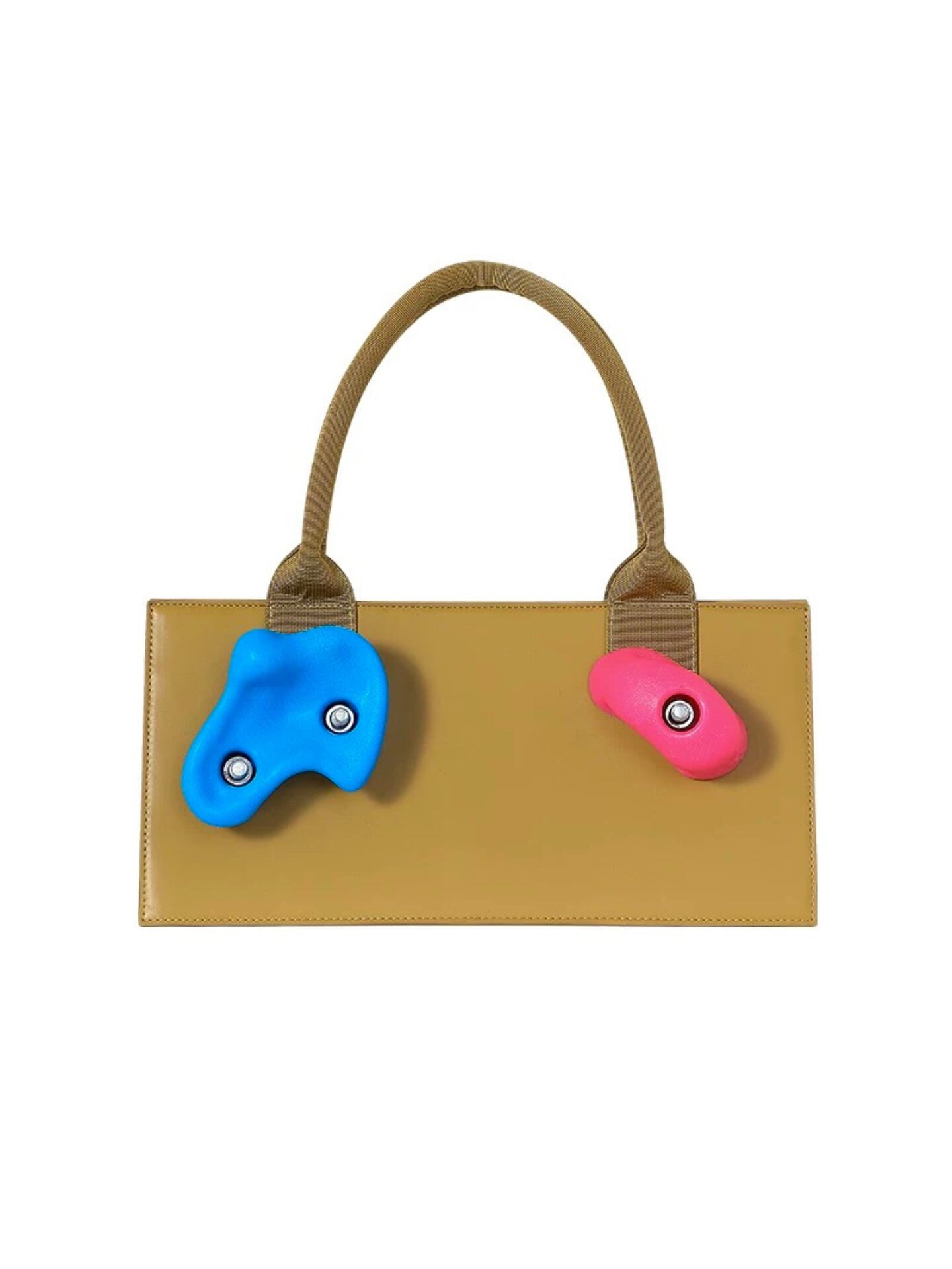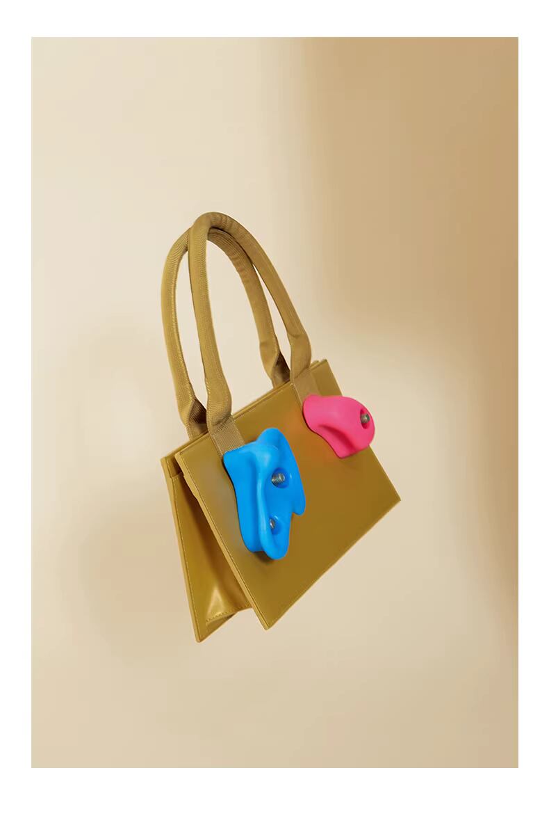 クライミング(ボルダリング)のホールドをモチーフにしたユニークなハンドバッグ。