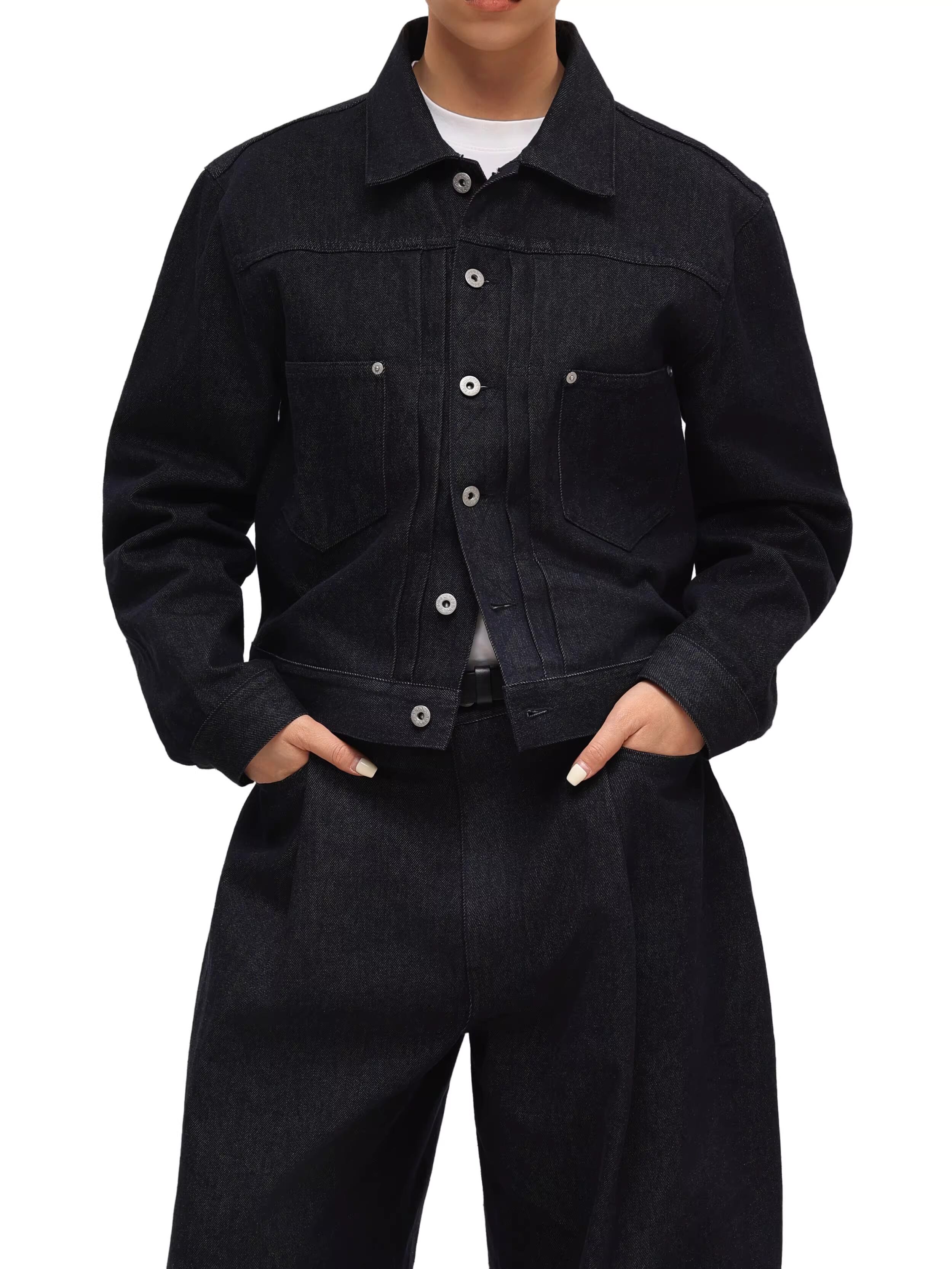 11.3オンスの程よい厚みを持つコットン100%のデニム生地を使用しており、深みのある「ネイビーブルー」が上品な印象を与えます。