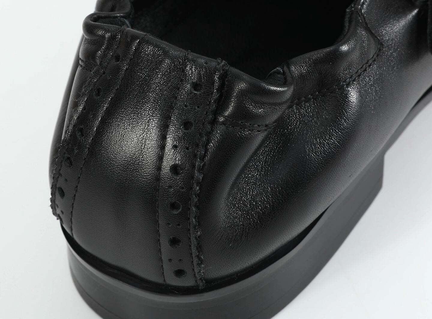 繊細なパンチング加工と刺繍が施され、足元に洗練されたアクセントを加えます。