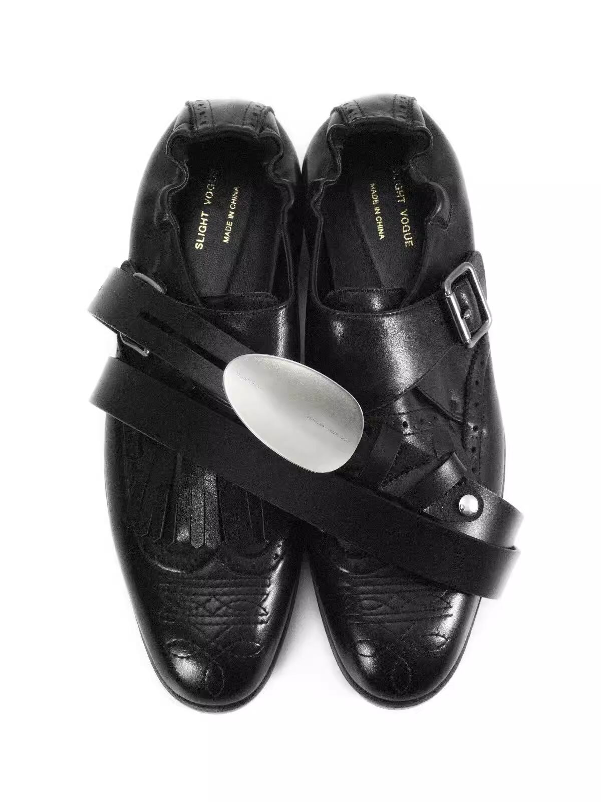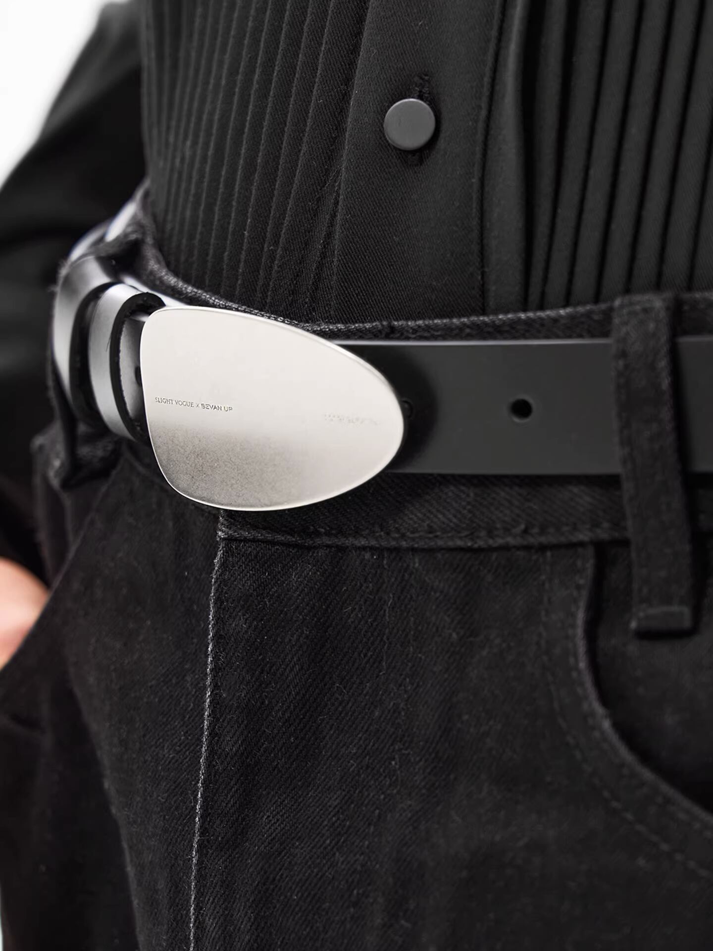 Slight Vogue x BEVAN UP Curved Buckle Leather Belt