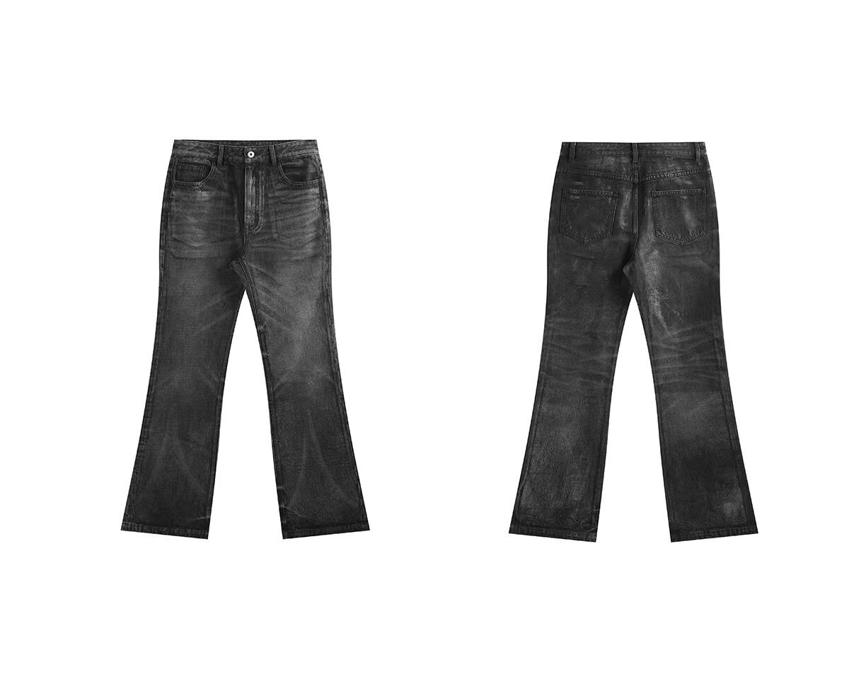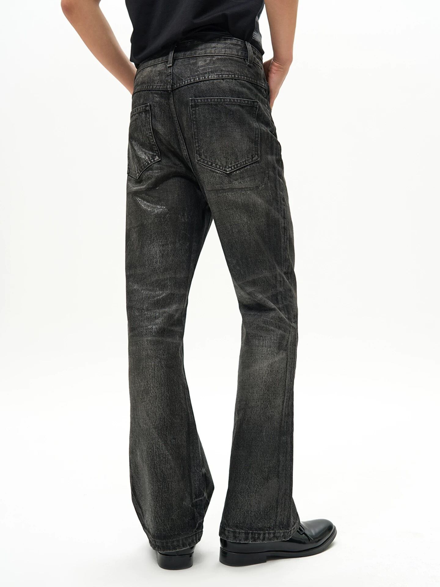 デニムの表面に不規則なワックスの被膜とエイジング感を形成し、ヴィンテージライクで奥行きのあるブラックグレーのグラデーションを表現しています。