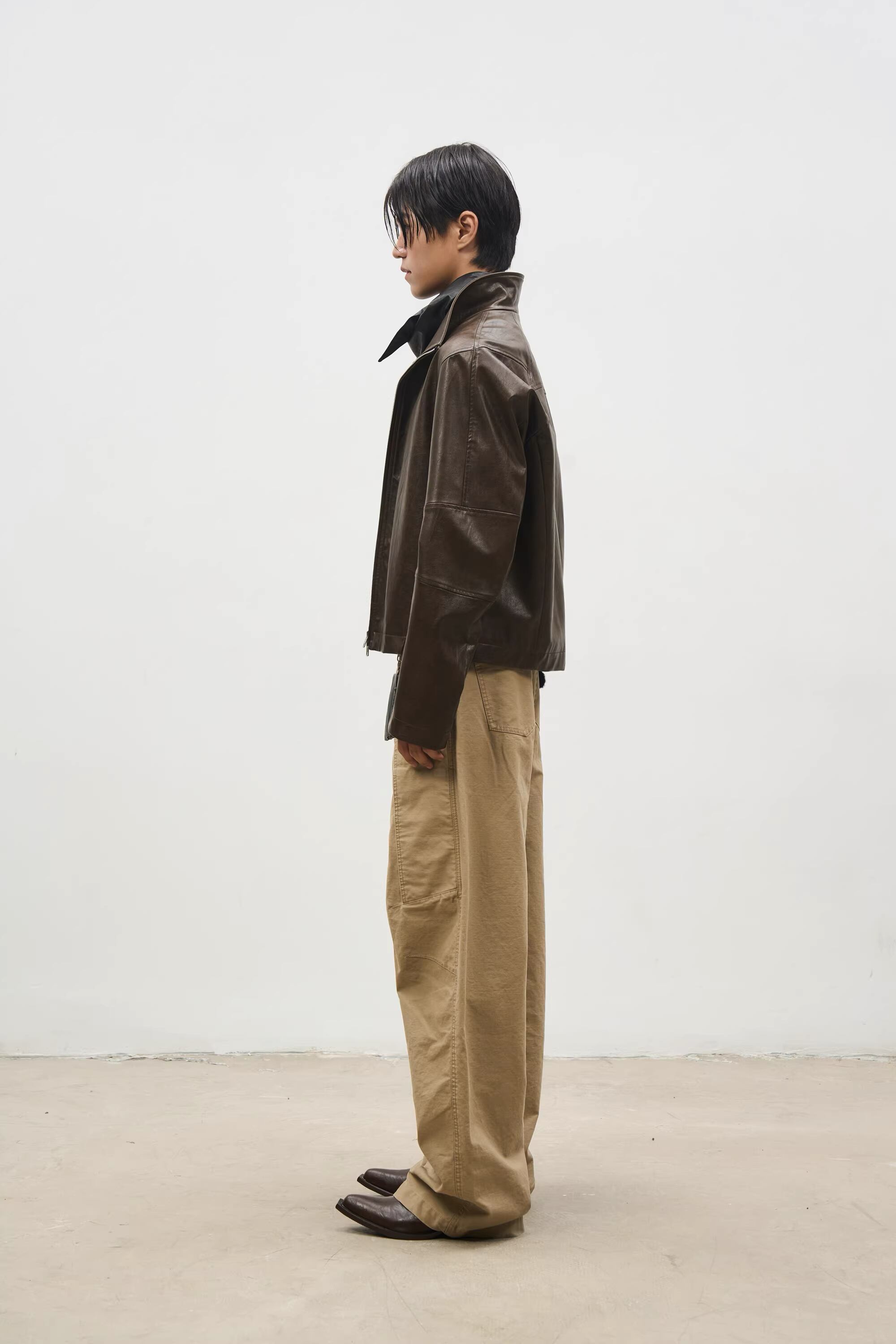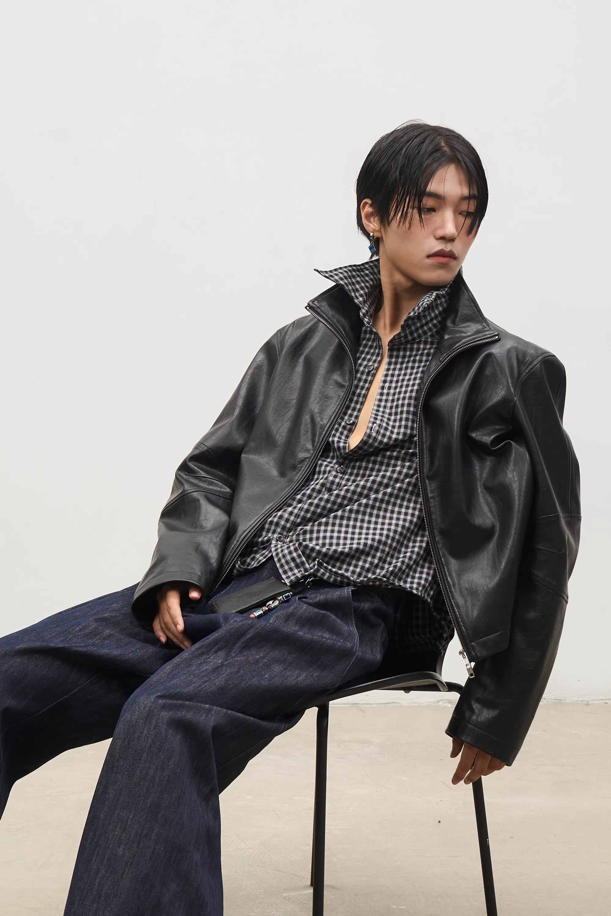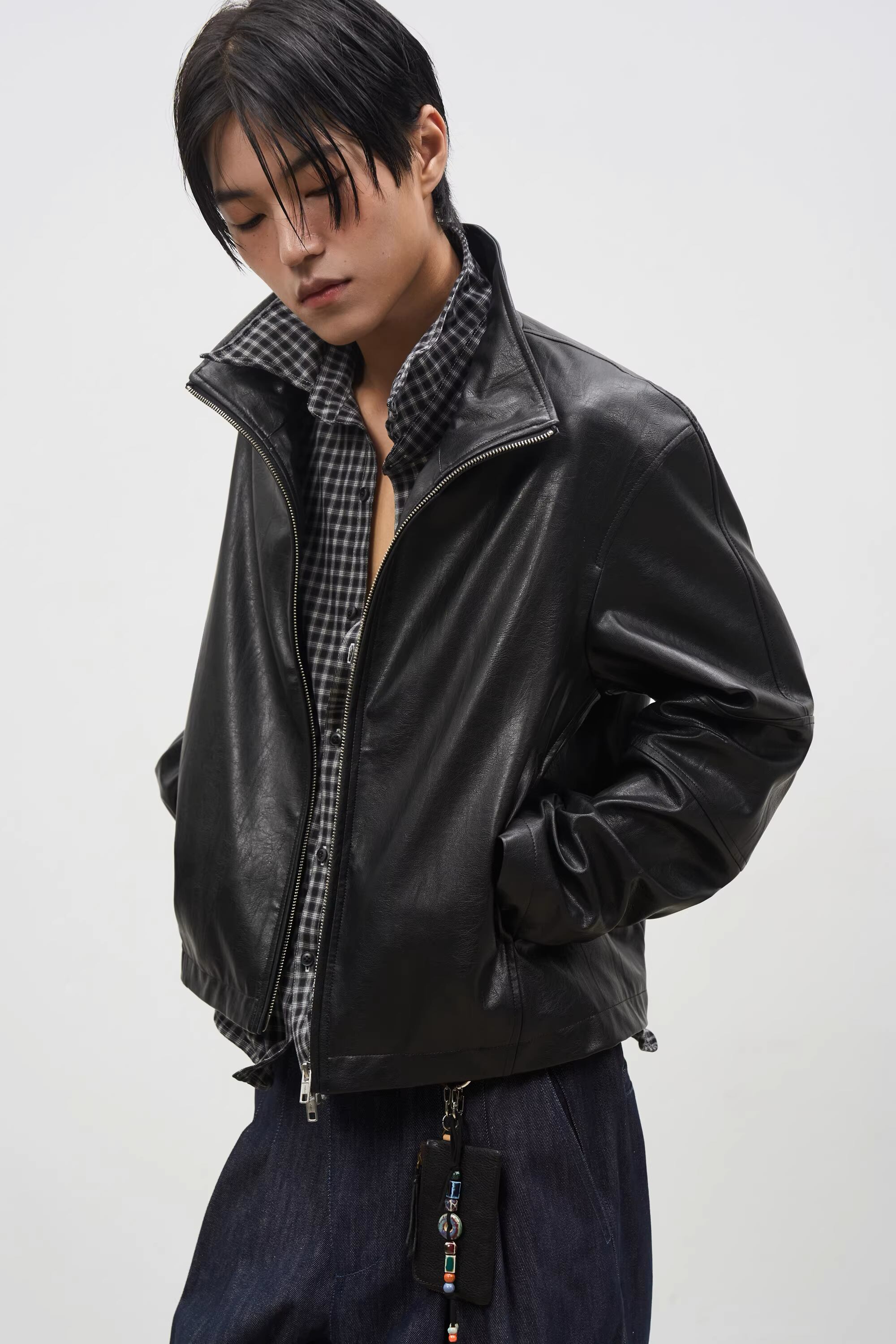 戦国時代の「信陵君」からインスピレーションを得た、レトロな雰囲気と現代的なリラックス感を融合させたPUレザージャケット。
