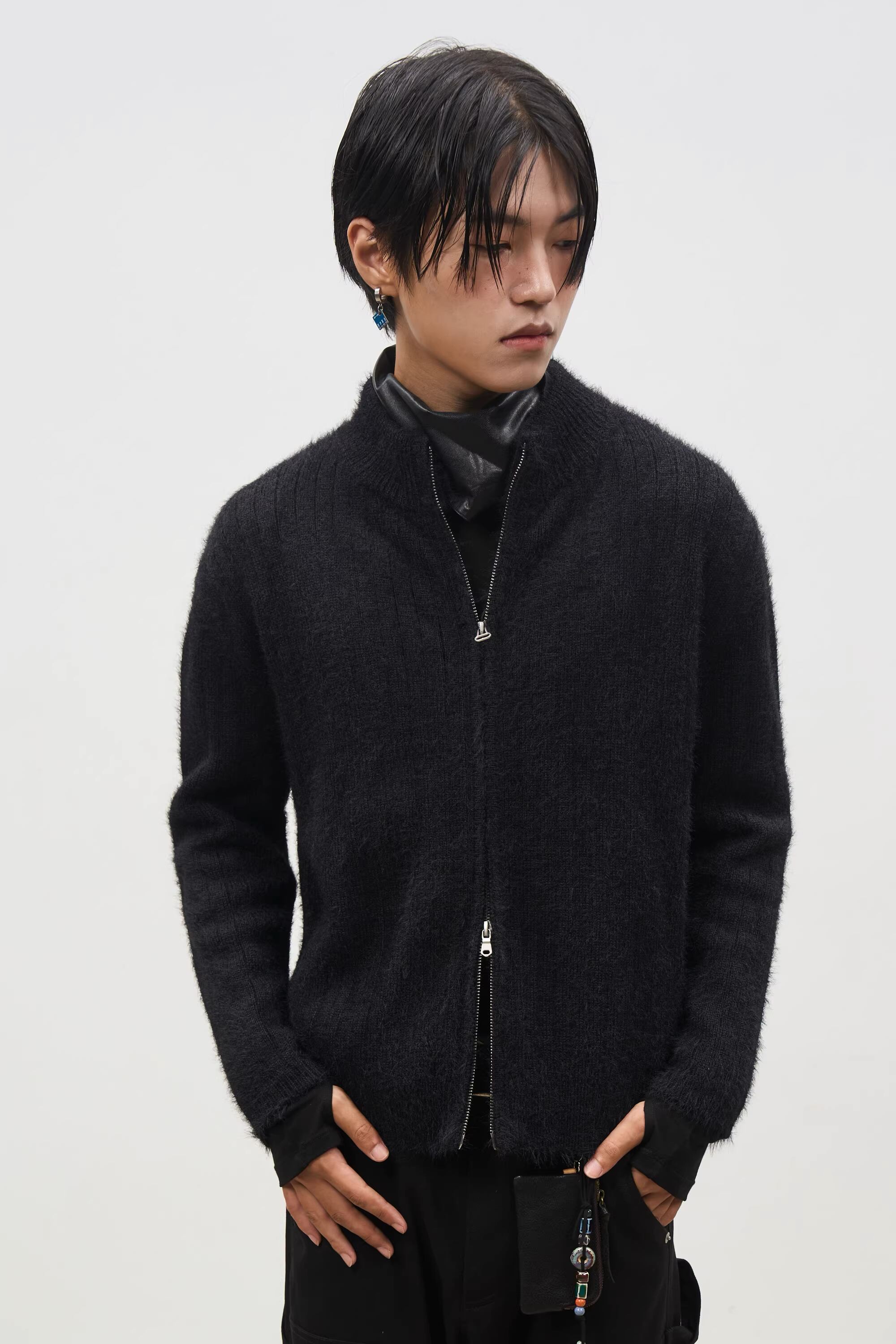SOUTHFISH Mohair Blend Zip Knit Cardigan