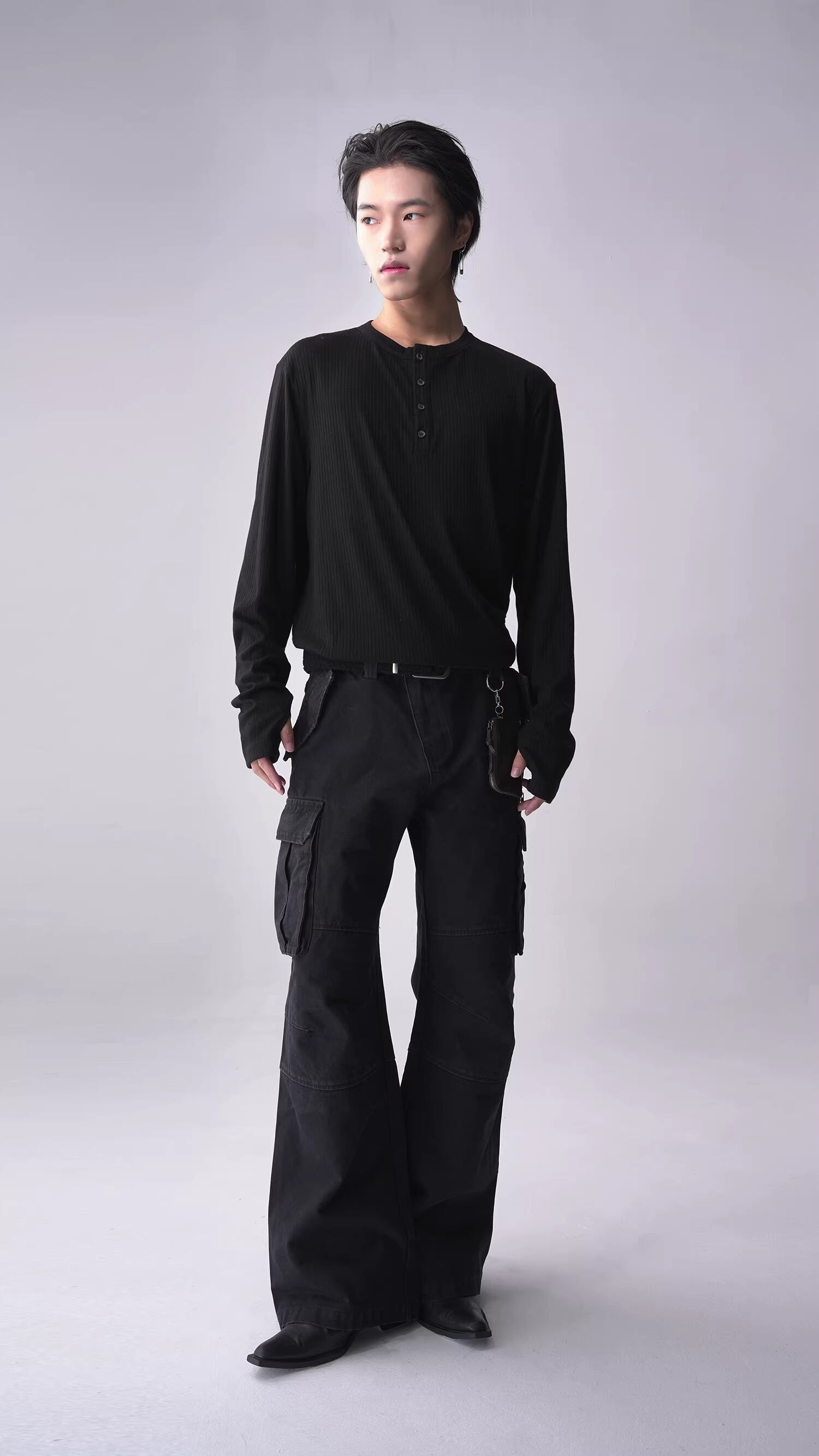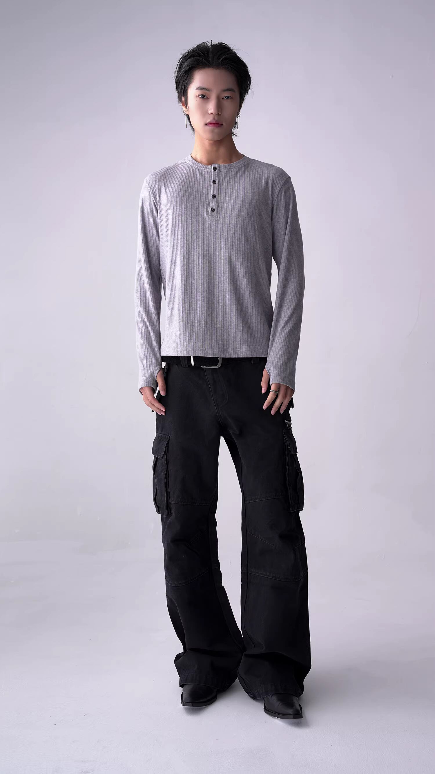 ■ 商品の特徴 280gのヘビーウェイトな混紡生地を使用した、質感豊かなヘンリーネックTシャツ。 縦のラインを強調する細かなリブ編みが、優れた伸縮性と肌触りの良さを実現しています。襟元にはダメージ加工を施した特注のホーンボタンを採用し、ヴィンテージライクなアクセントをプラス。 袖口は親指を通せる「サムホール(忍者袖)」仕様になっており、レイヤードスタイルのインナーとしても、一枚での着用でも様になる機能的なデザインです。 ■ カラー ダークブラウン / ブラック / グレー ■ モデル 身長:178cm / 体重:60kg / 着用サイズ:M ■ S 着丈:61cm 胸囲:98cm 肩幅:41.5cm 袖丈:60.5cm ■ M 着丈:63cm 胸囲:102cm 肩幅:43cm 袖丈:62cm ■ L 着丈:65cm 胸囲:106cm 肩幅:44.5cm 袖丈:63.5cm ■ XL 着丈:67cm 胸囲:120cm 肩幅:46cm 袖丈:65cm ■ 素材 レーヨン 48% ポリエステル 29% ナイロン 19% ポリウレタン 4% ■ 発送・注文に関する情報 ご注文から商品到着まで、最短で7〜8日 / 通常10〜14日ほどお時間をいただいております。 ご購入前に ※SHOPPING GUIDE※ を必ずご確認ください。 ■ 追跡番号について 追跡番号は、商品が国内発送手続きに入った際にご案内いたします。 ご注文直後には追跡番号が発行されませんので、あらかじめご了承ください。 ご不明点がございましたら、いつでもお気軽にお問い合わせください。 ■ 商品に関するご注意 サイズ選びにご不安な場合は、サイズガイドをご参照ください。 撮影環境やモニターによって、実際の色味が異なることがあります。 (※商品は手作業で測定されており、2〜3cmの誤差がある場合があります。あくまで参考としてください。)