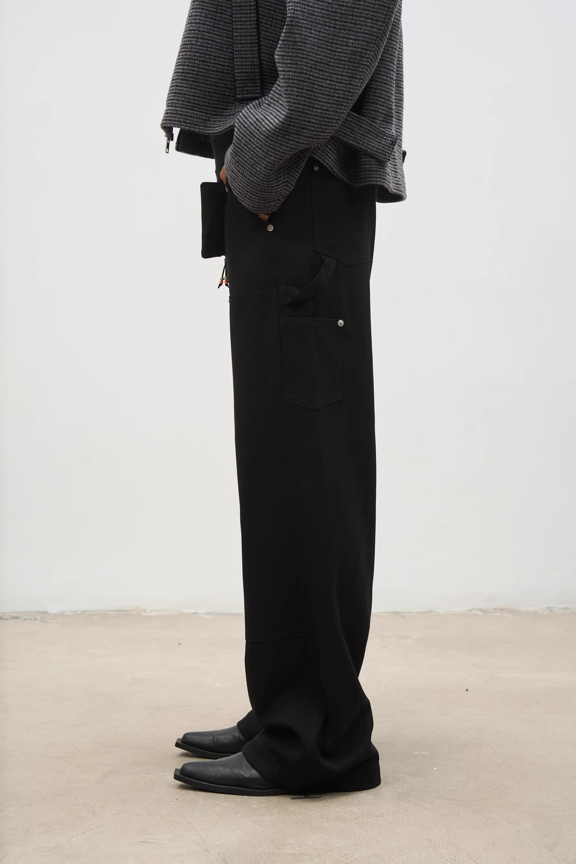 ワークウェアの定番「ロガーパンツ(伐採作業員用パンツ)」の無骨なディテールと、ドレスパンツの上質な素材感を融合させた革新的な一本。