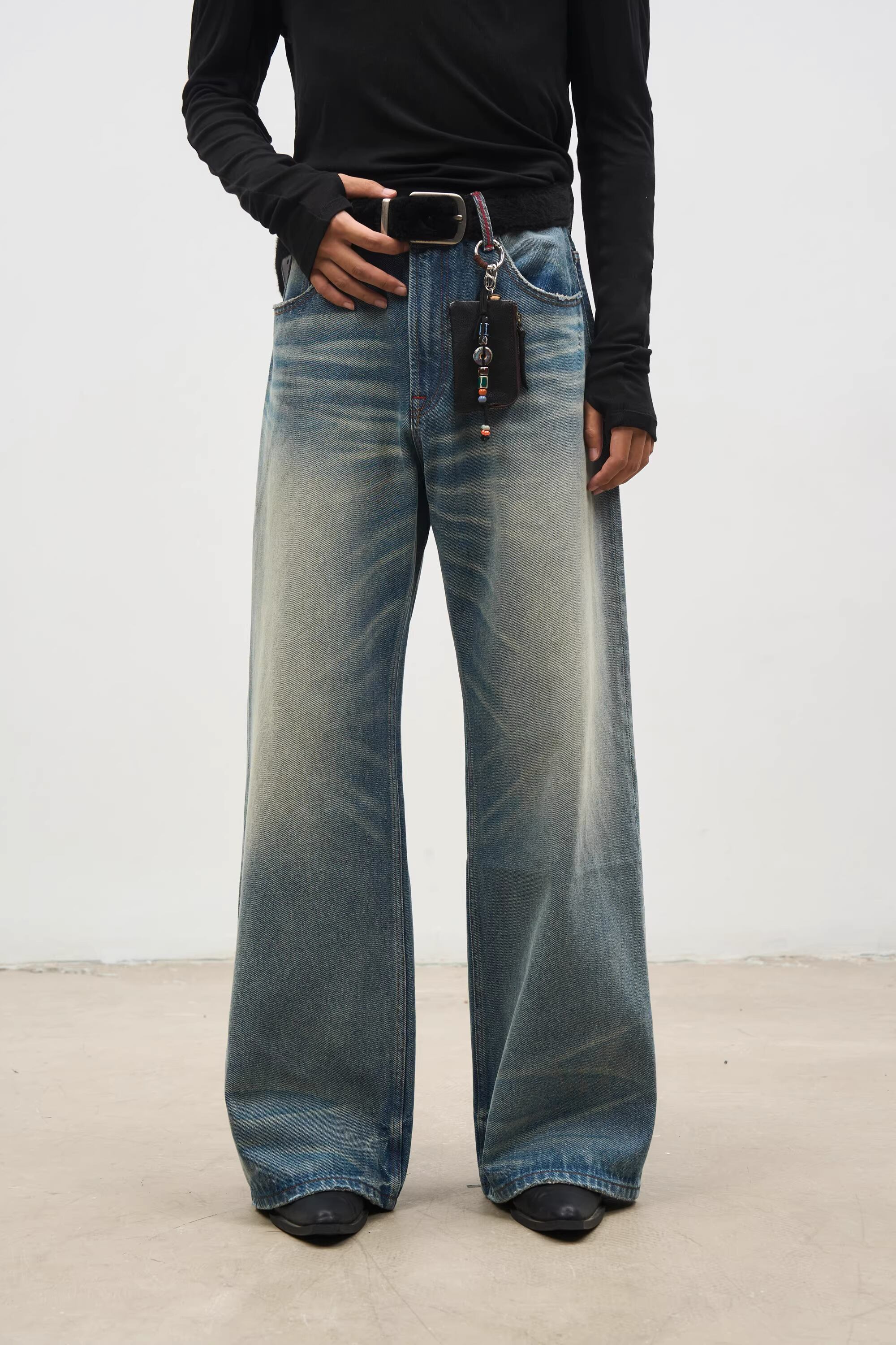 1日にわずか2〜3本しか仕上げられない高度な技術により、アイスブルーの生地に自然なエイジングを加えた、極めてリアルで高級感のあるヴィンテージスタイルを実現。