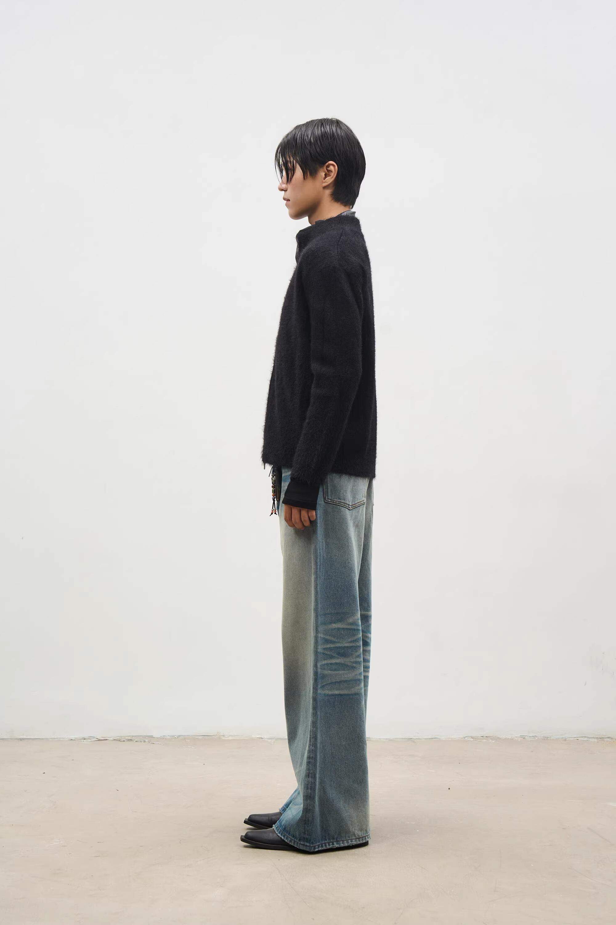 「Blue Mamba」と名付けられた、開発に1年を費やし9回の改良を経て完成した渾身のデニムパンツ。一般的な12オンスよりも厚手でタフな13.6オンスのデニム生地を使用し、重厚感と立体的なシルエットを維持します。