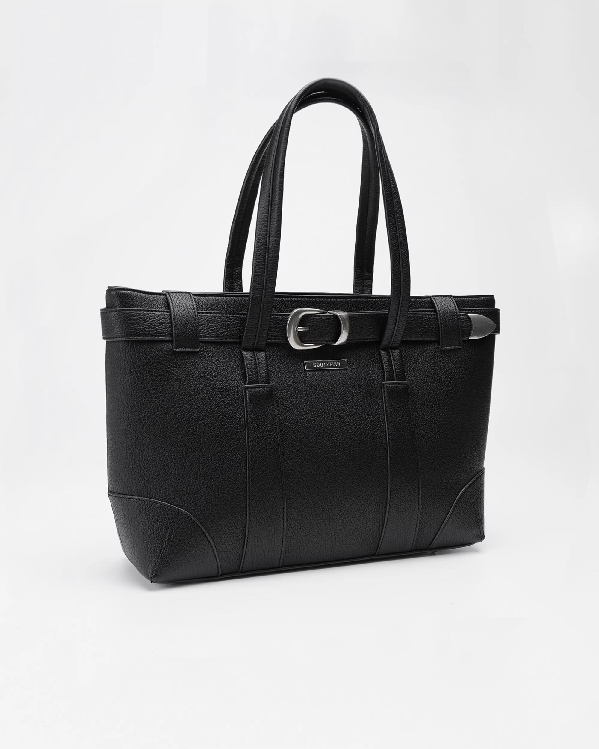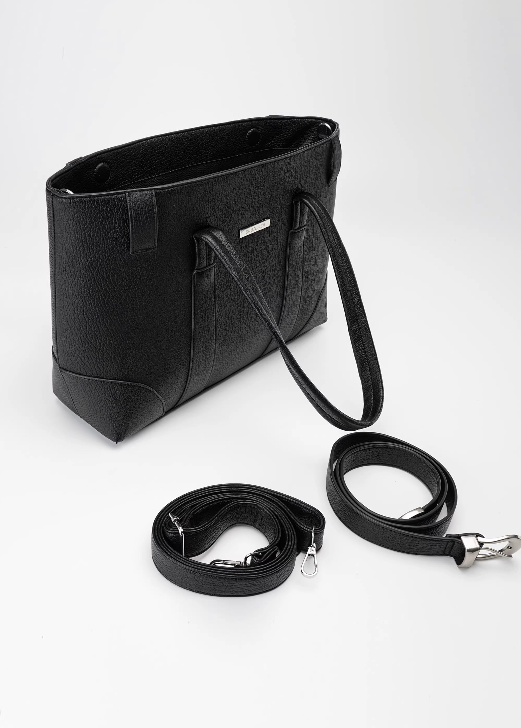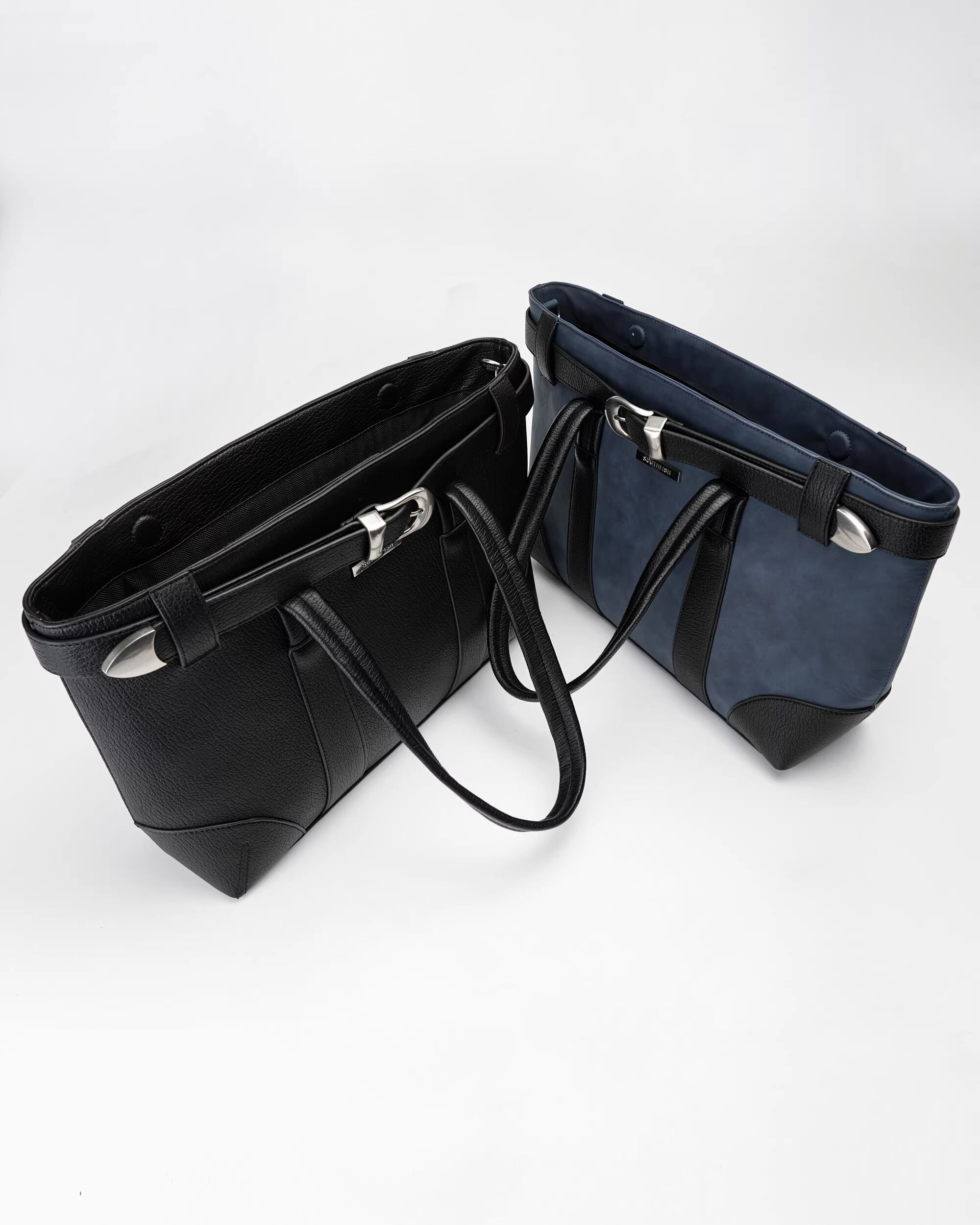 洗練されたPUレザーを使用し、実用性とデザイン性を兼ね備えた大容量トートバッグ。