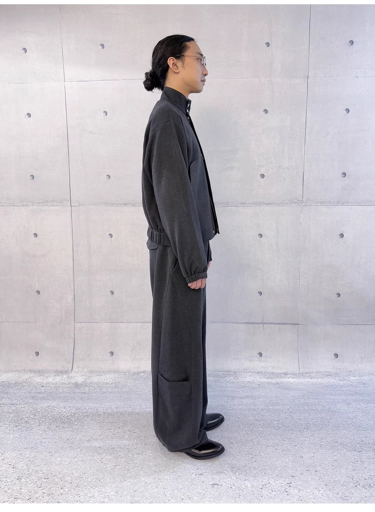 フロントはジッパーと隠しマグネットボタンを採用し、ミニマルで洗練された印象に仕上げています。