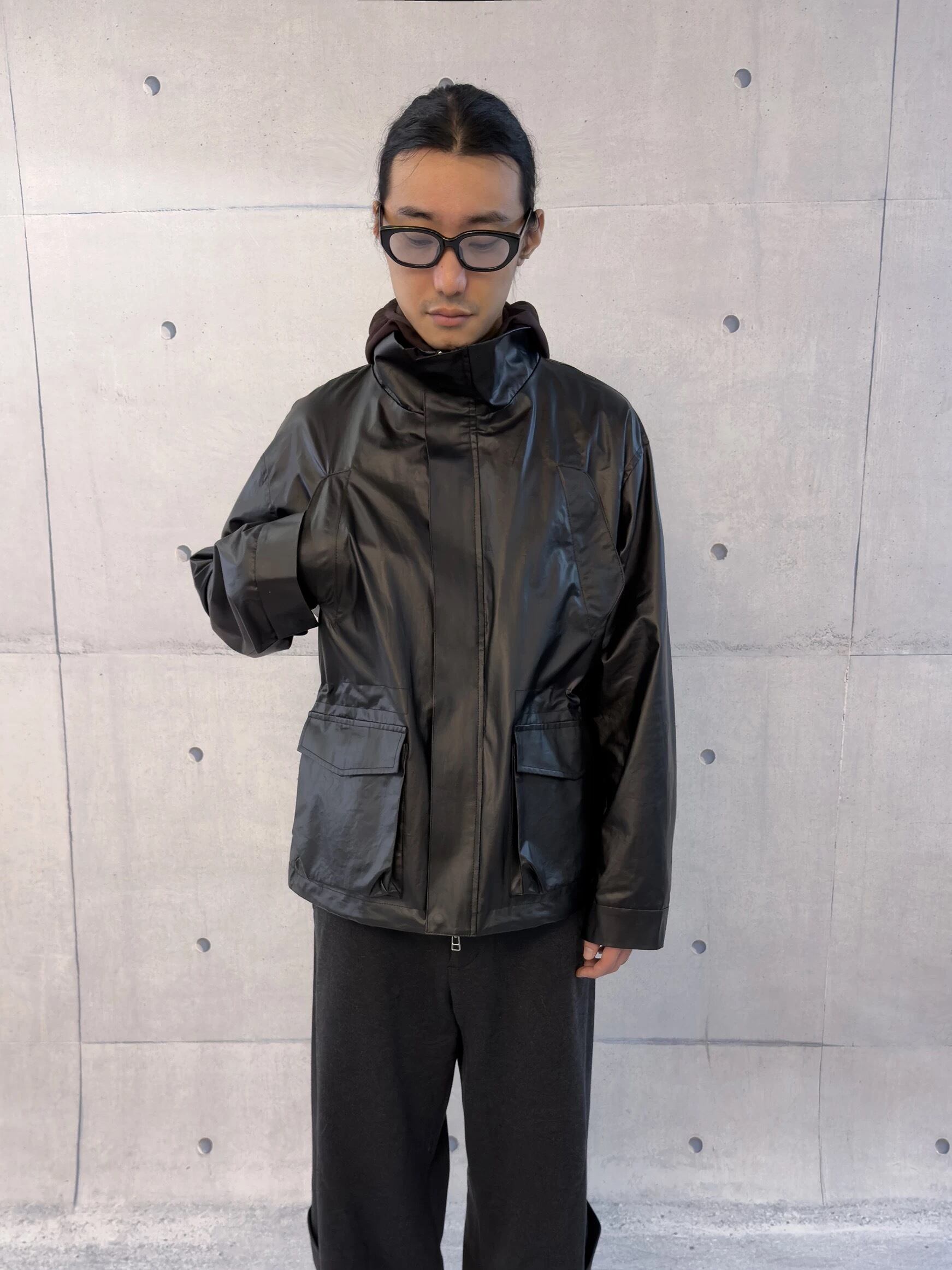 コットン100%の生地にコーティング加工を施し、レザーのような自然な光沢と独特のシワ感を表現したハンティングジャケット。