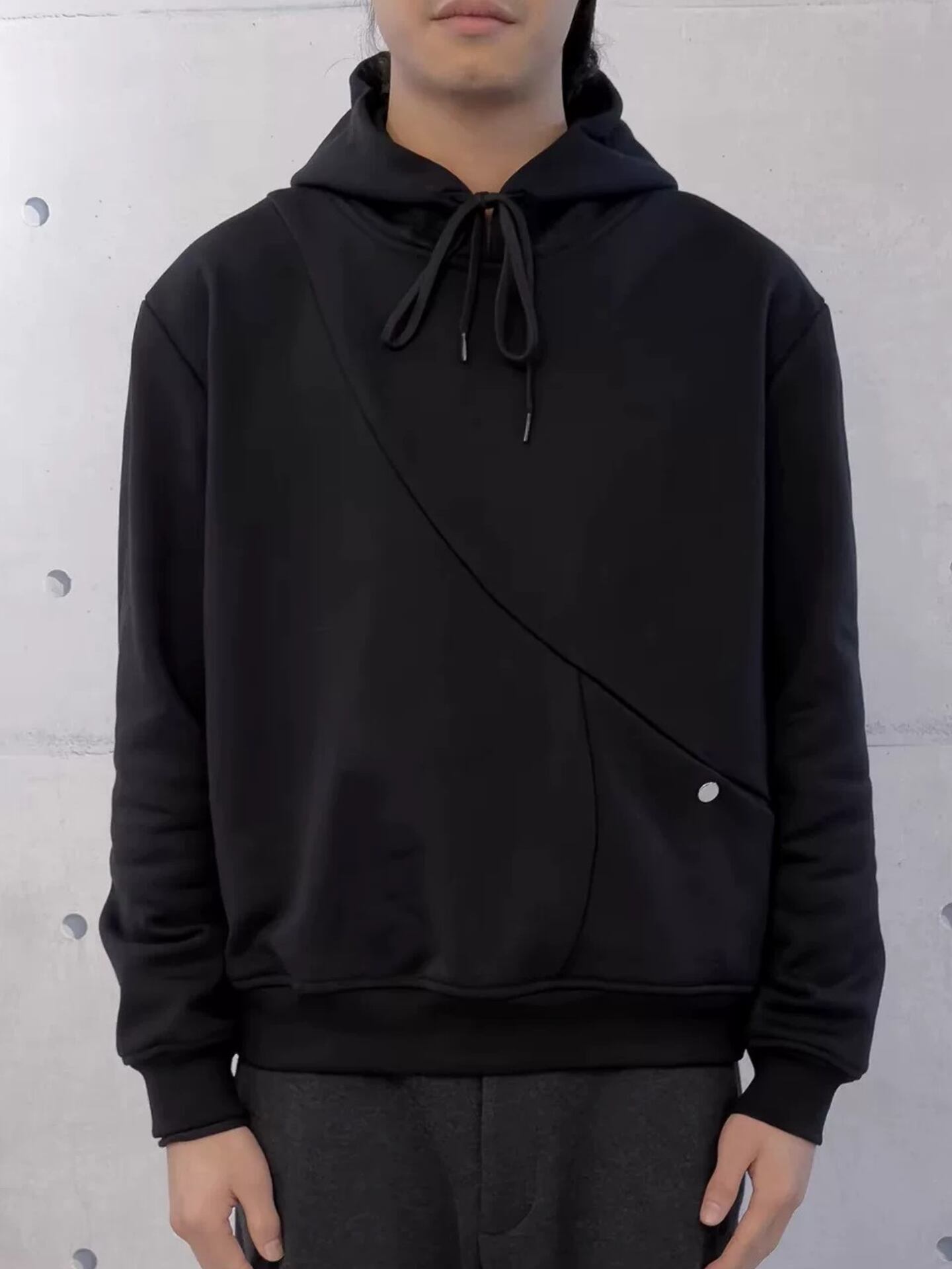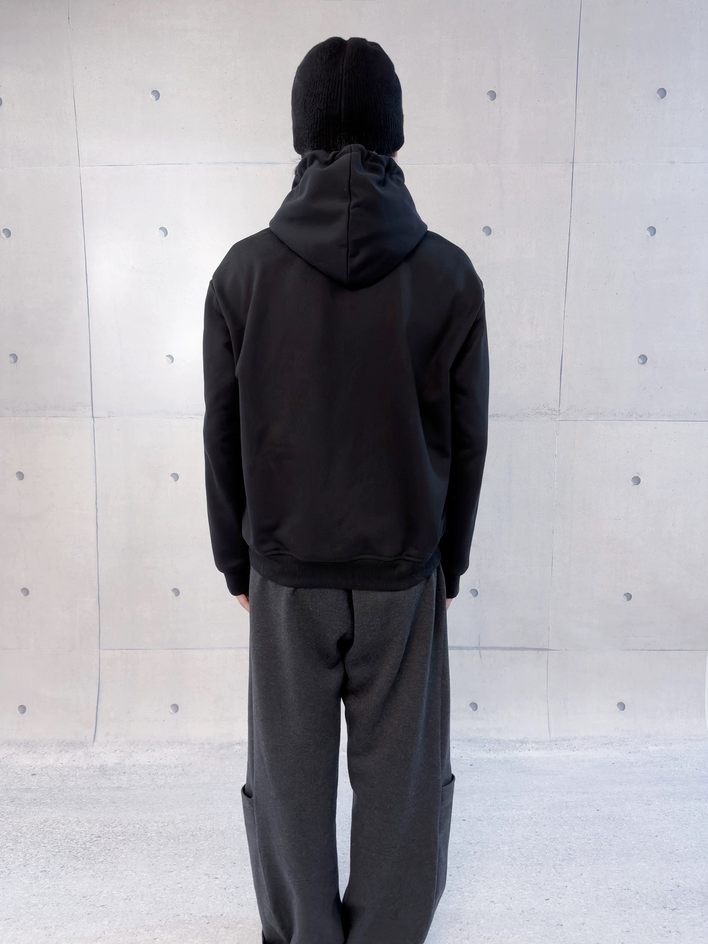 肌触りの良いコットン100%の裏毛(フレンチテリー)素材を使用した、デザイン性の高いプルオーバーパーカー。