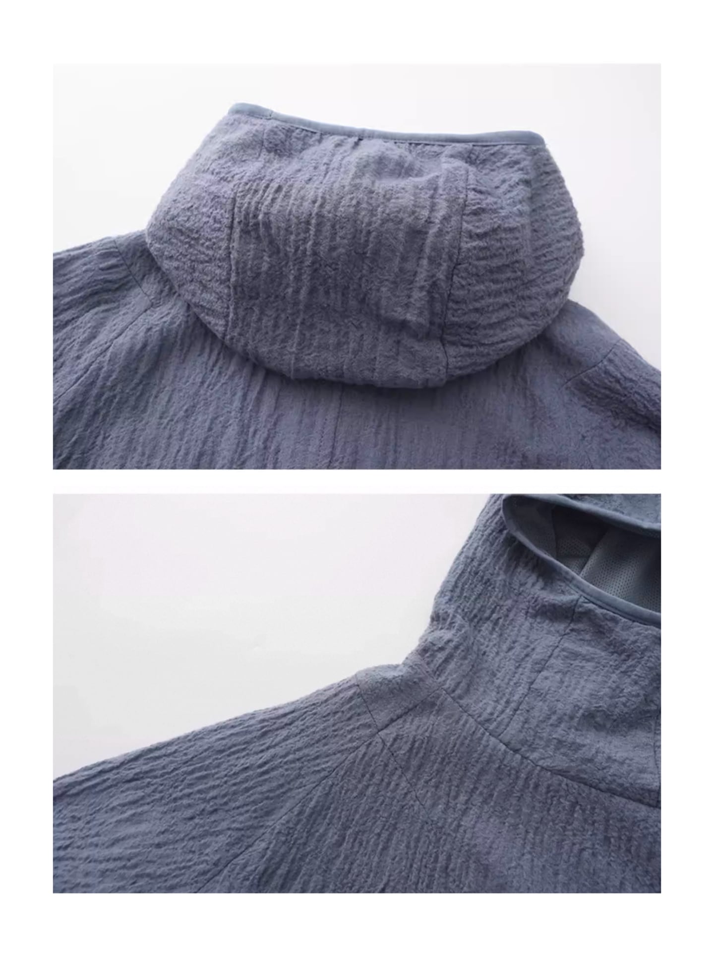 フードの縁には伸縮性のあるパイピングを施し、フィット感とスポーティなアクセントをプラス。