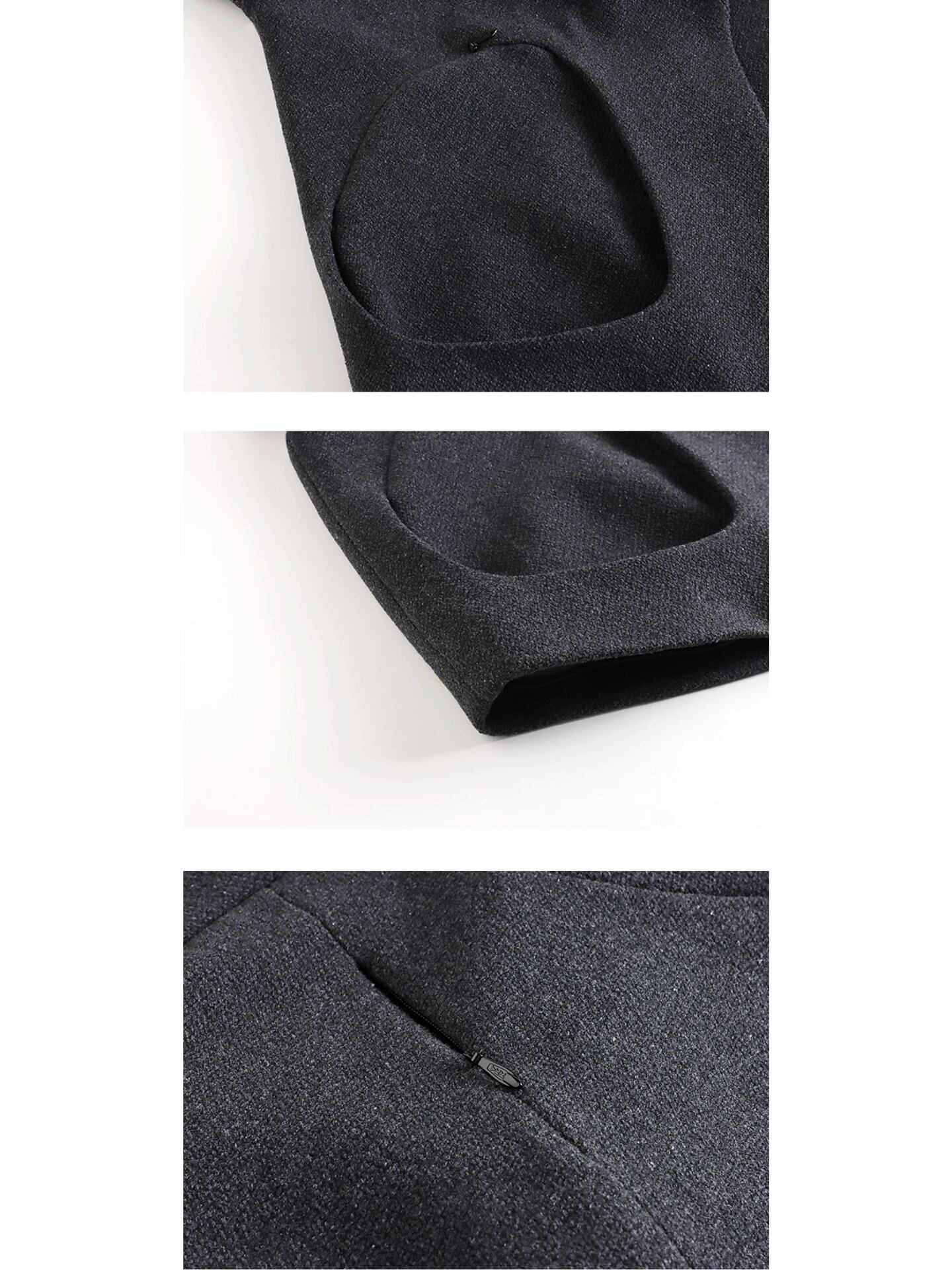 非対称のカッティングが魅力的なシルエットを生み出し、他とは一線を画すスタイルを実現しています。