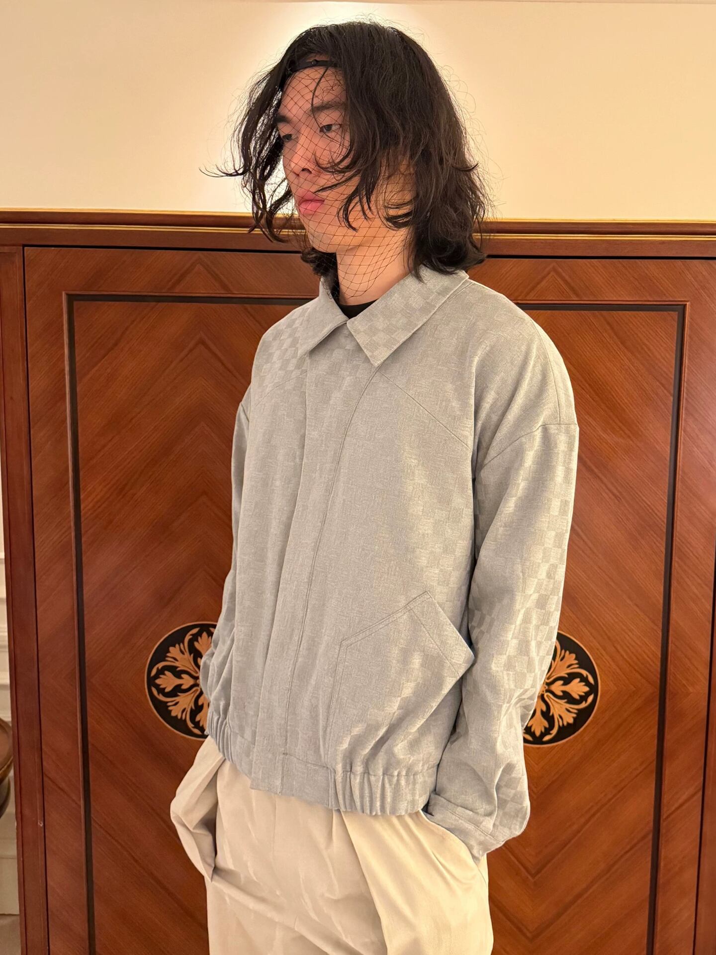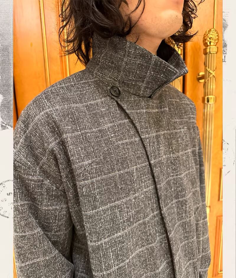 その実態の多くが謎に包まれたブランド「Conchoboe」より、風をはらんだ船の帆をイメージしたアシンメトリージャケットが登場。