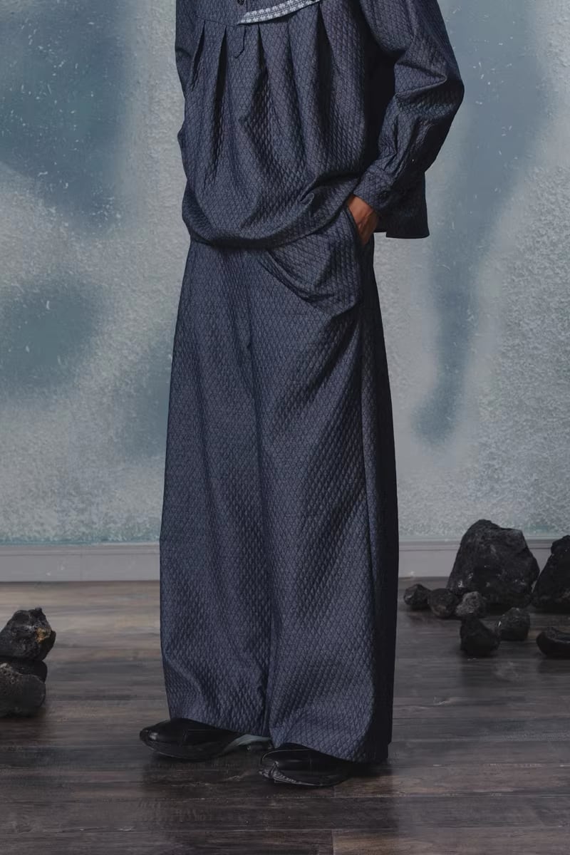 その実態の多くが謎に包まれたブランド「Conchoboe」より、構造的な美学を追求したワイドパンツが登場。