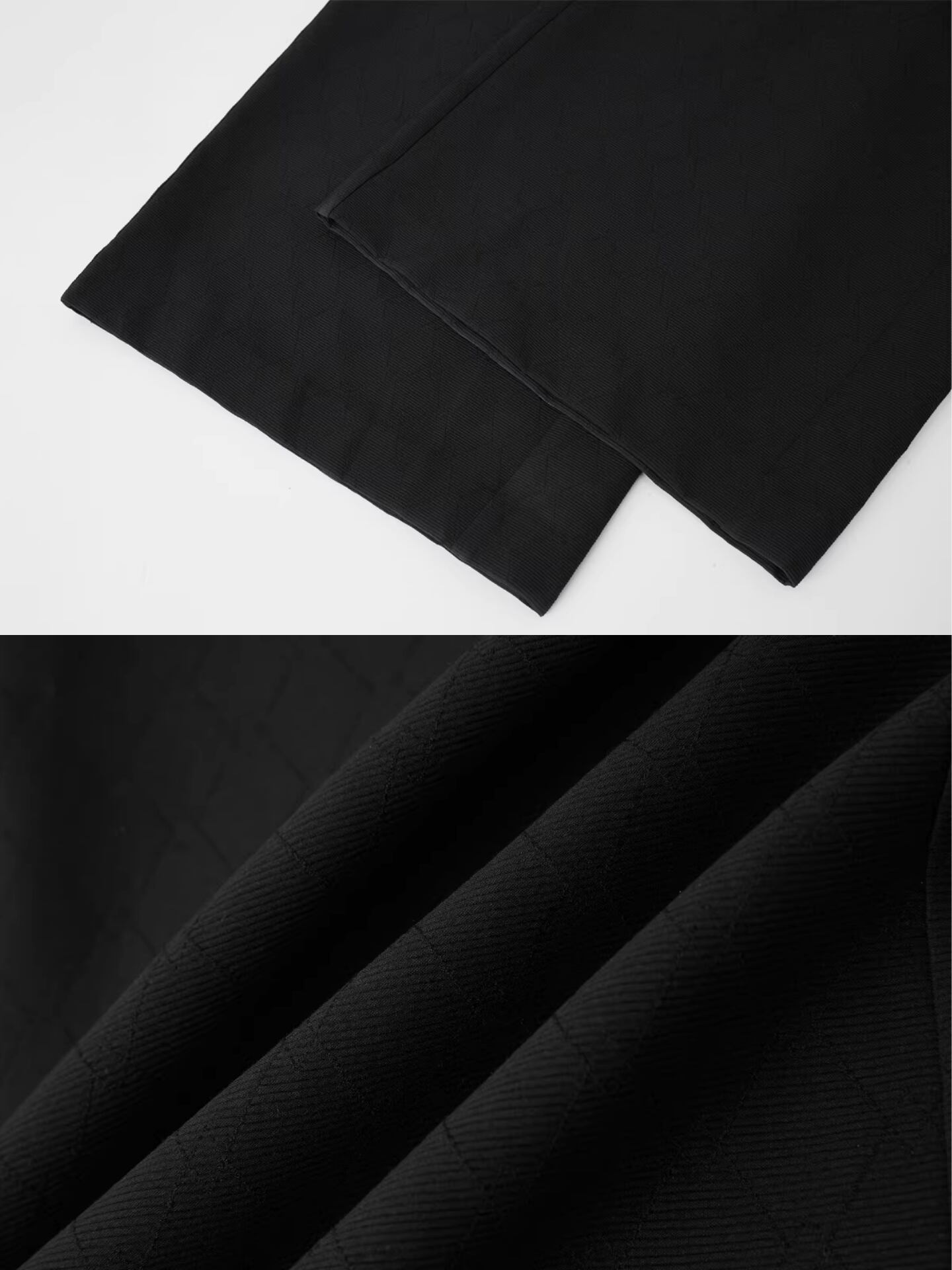 最大の特徴は、一般的なジッパーを使用せず、生地の重なりとボタンで構成された「特殊無ジッパー三角構造門襟」。