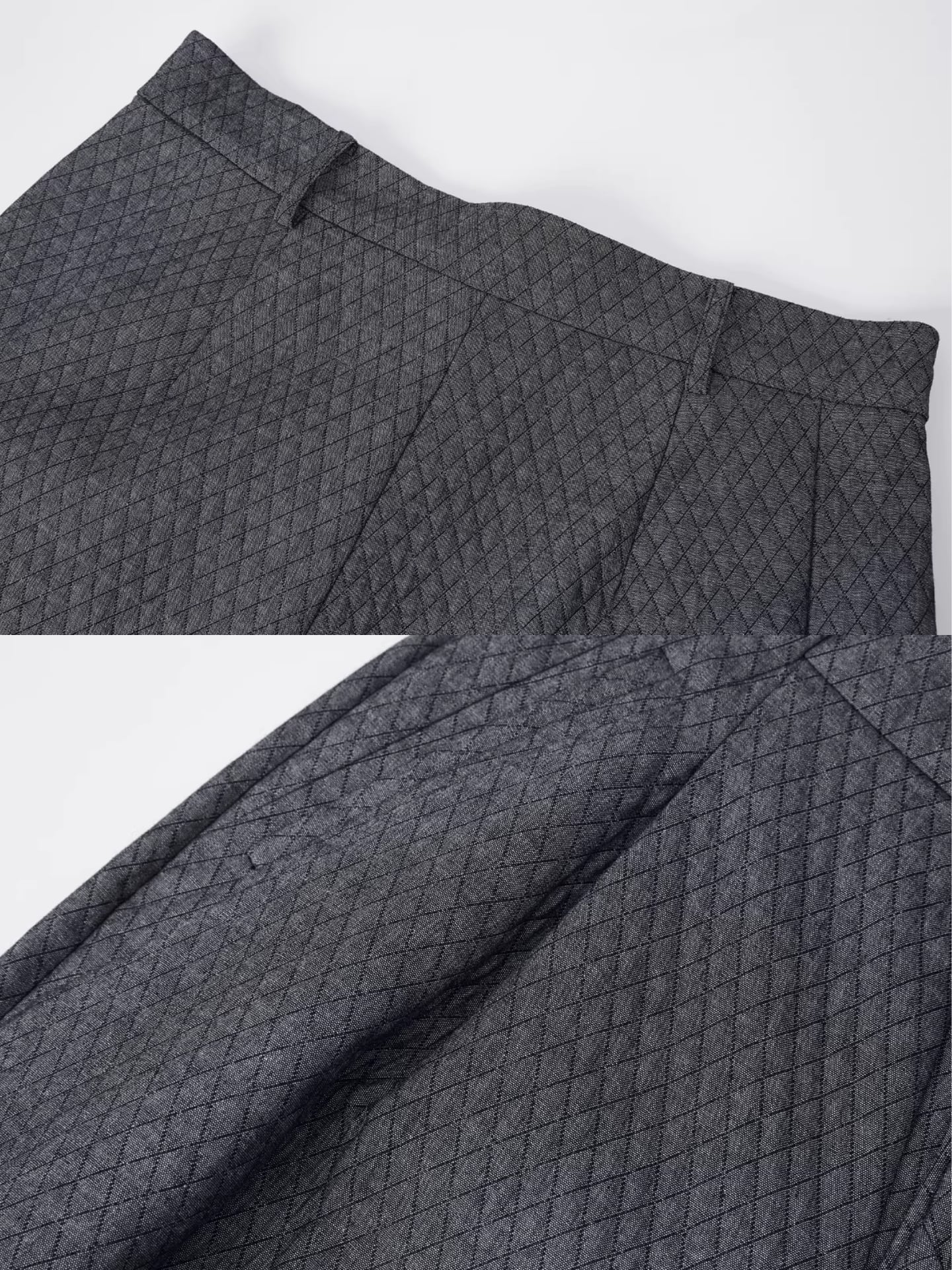 素材はカラーによって異なり、日本から輸入された菱形チェックの綿素材や、上質なウール混紡など、それぞれが異なる表情を見せます。