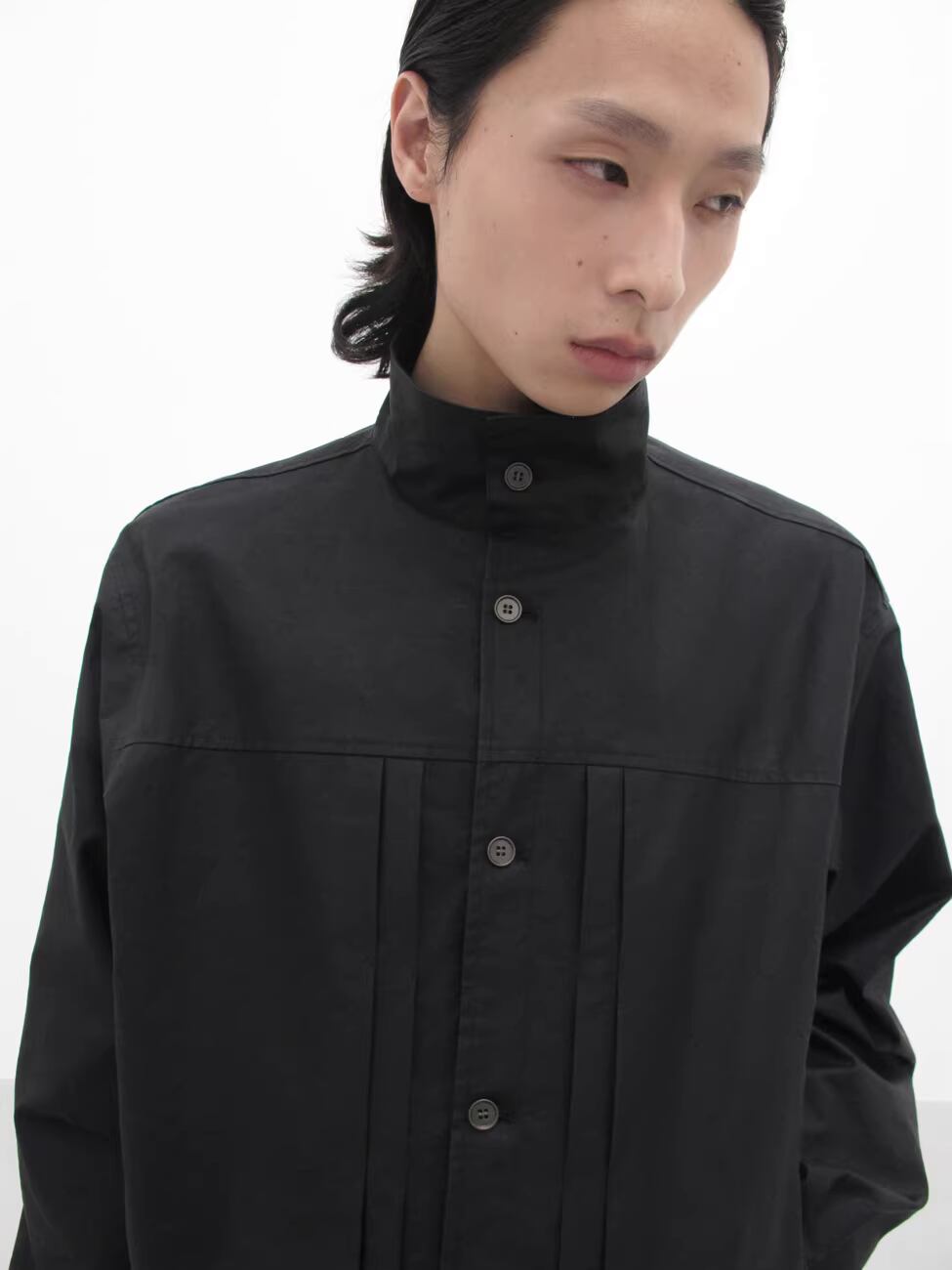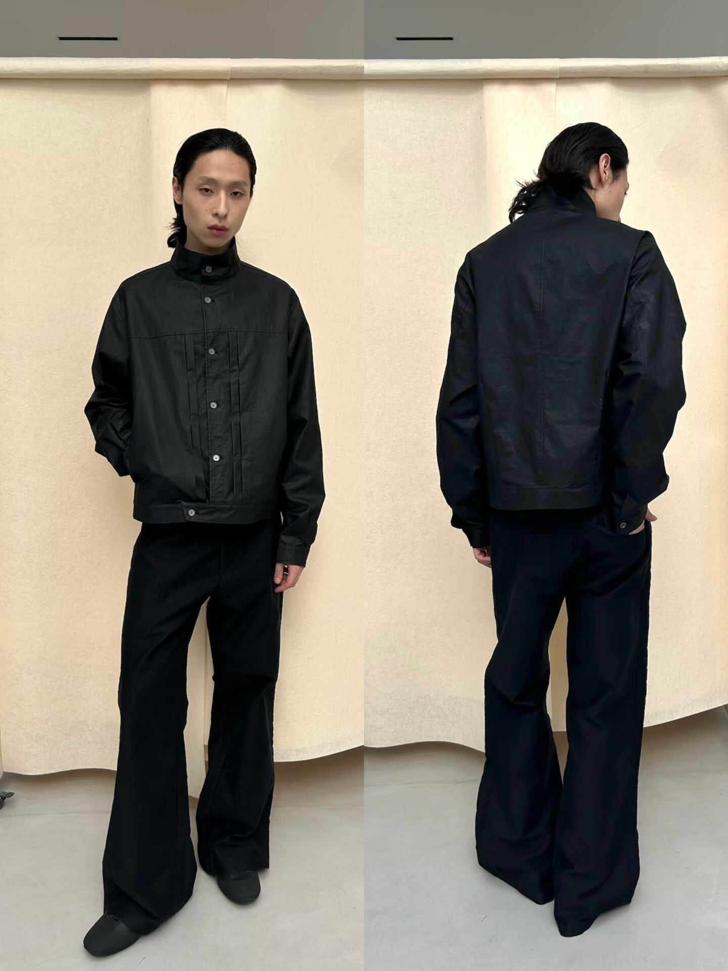 シルエットは動きやすさを考慮したリラックスフィットで、特注のボタンディテールがさりげないアクセントとなり、日常のスタイリングに実用性とファッション性を兼ね備えた一着です。