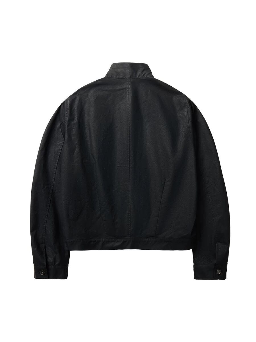 高品質なPU素材に独特のウォッシュ加工を施すことで、斑駁感のあるヴィンテージライクな表情に仕上げたショート丈のレザージャケット。