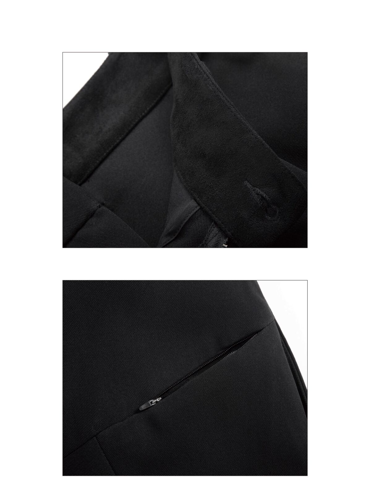 複数の切り替えとパイピング処理が施された凝ったデザインが、パンツ全体に構築的な表情を与えます。