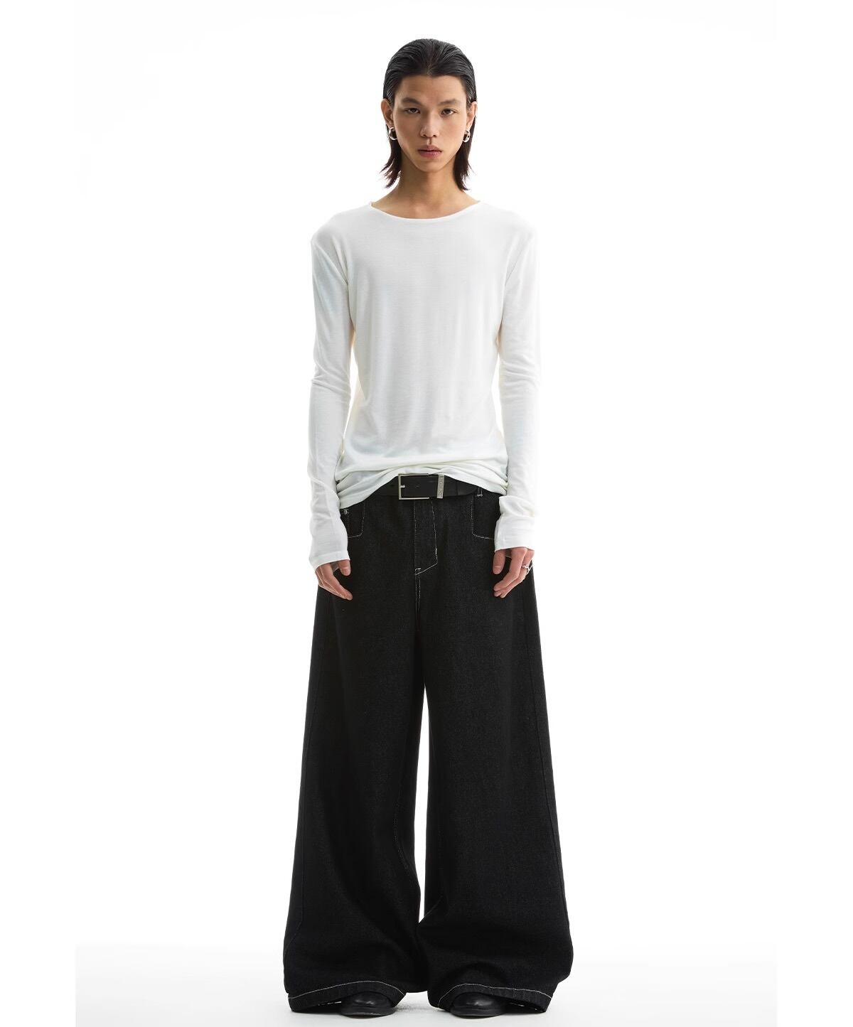 リラックス感とトレンドを兼ね備えたワイドシルエットのデニムパンツ。