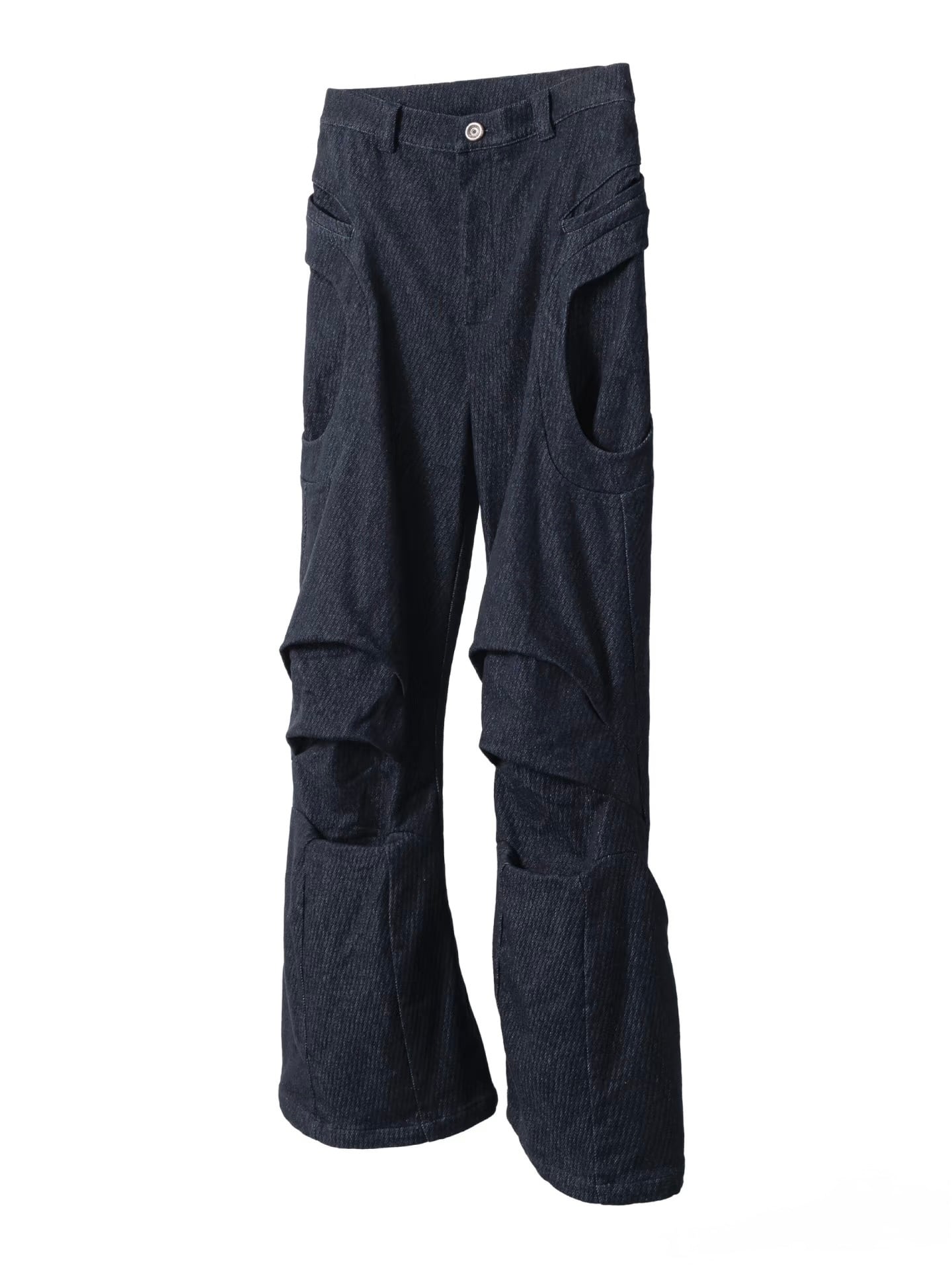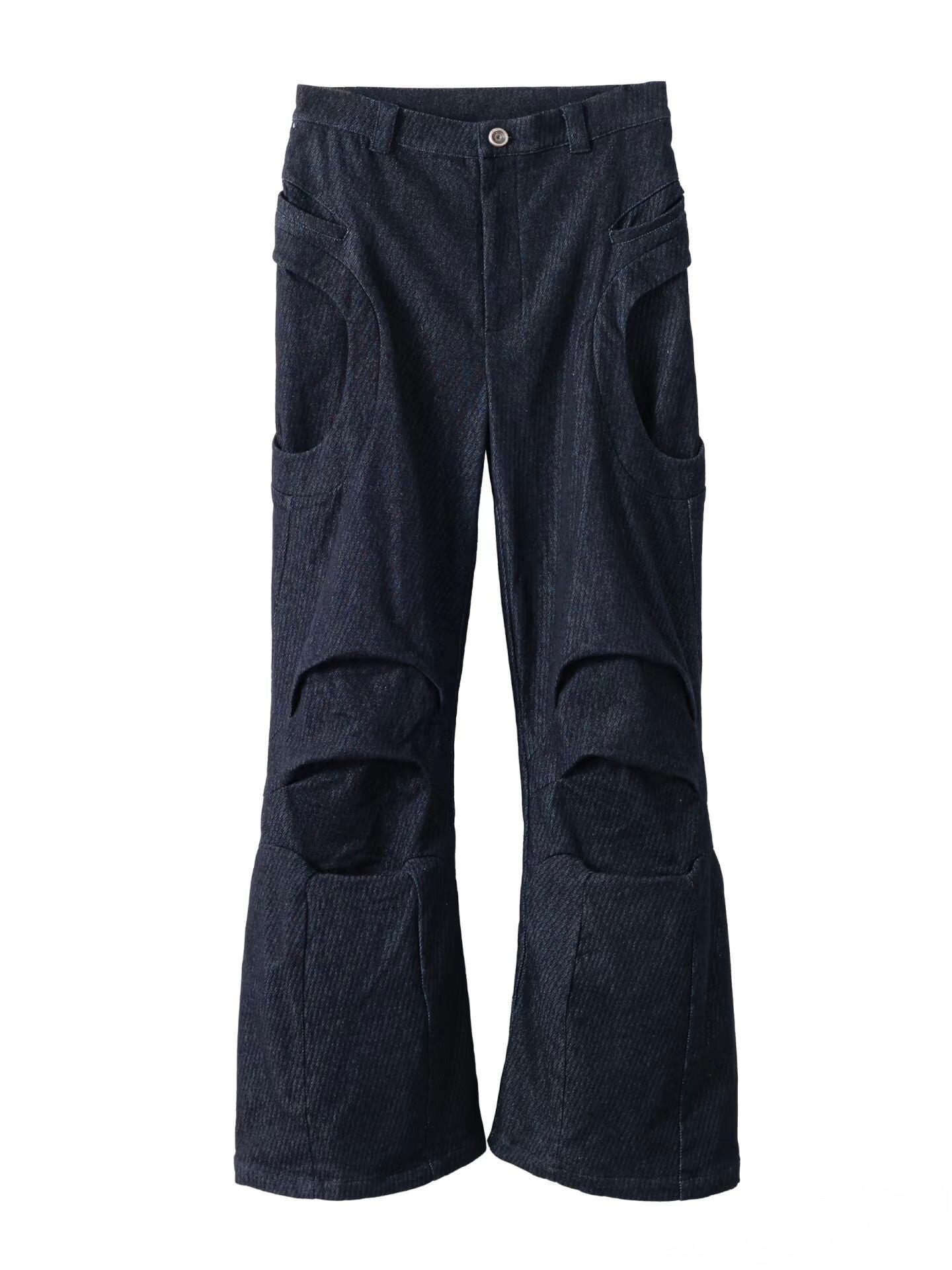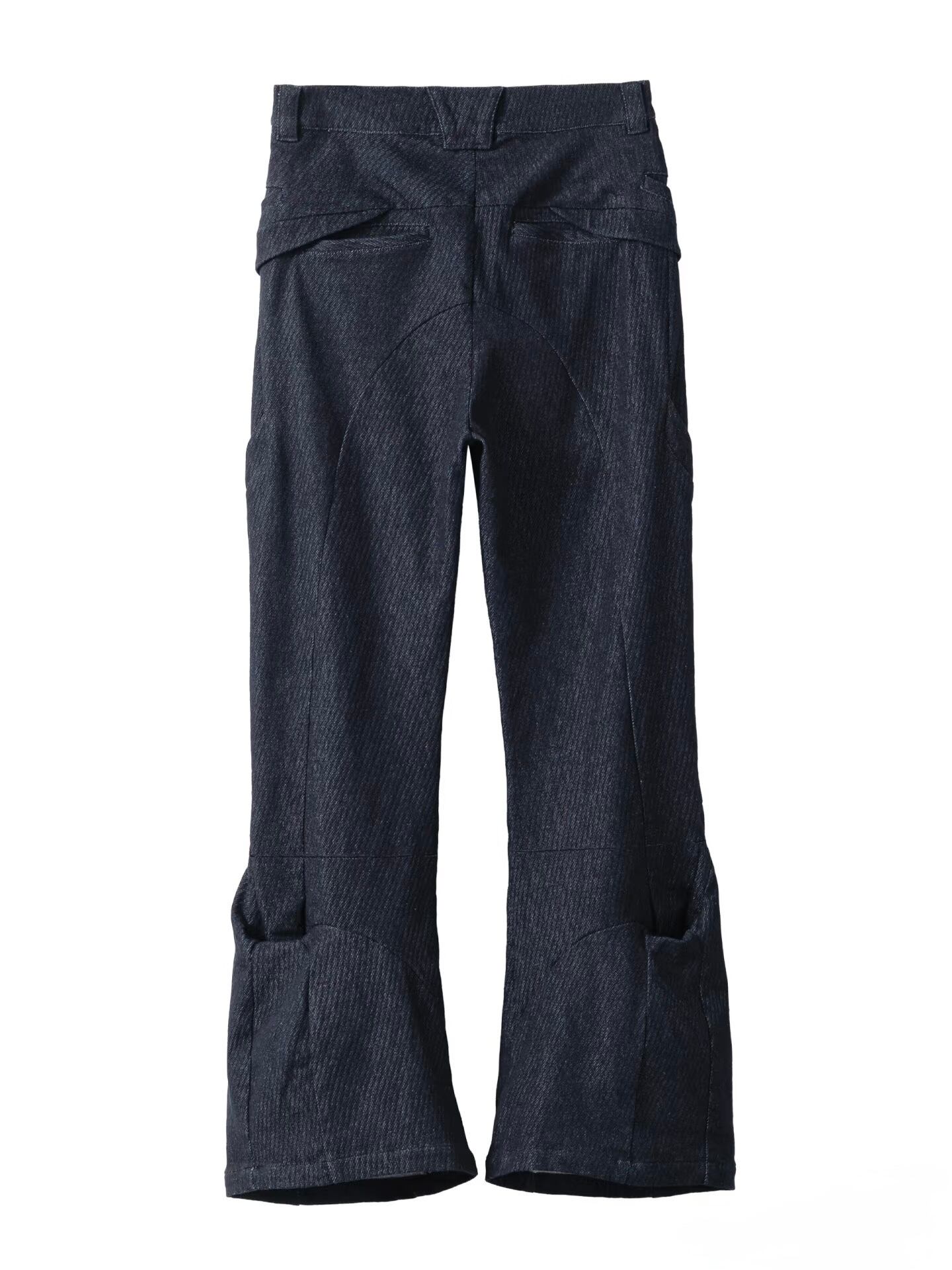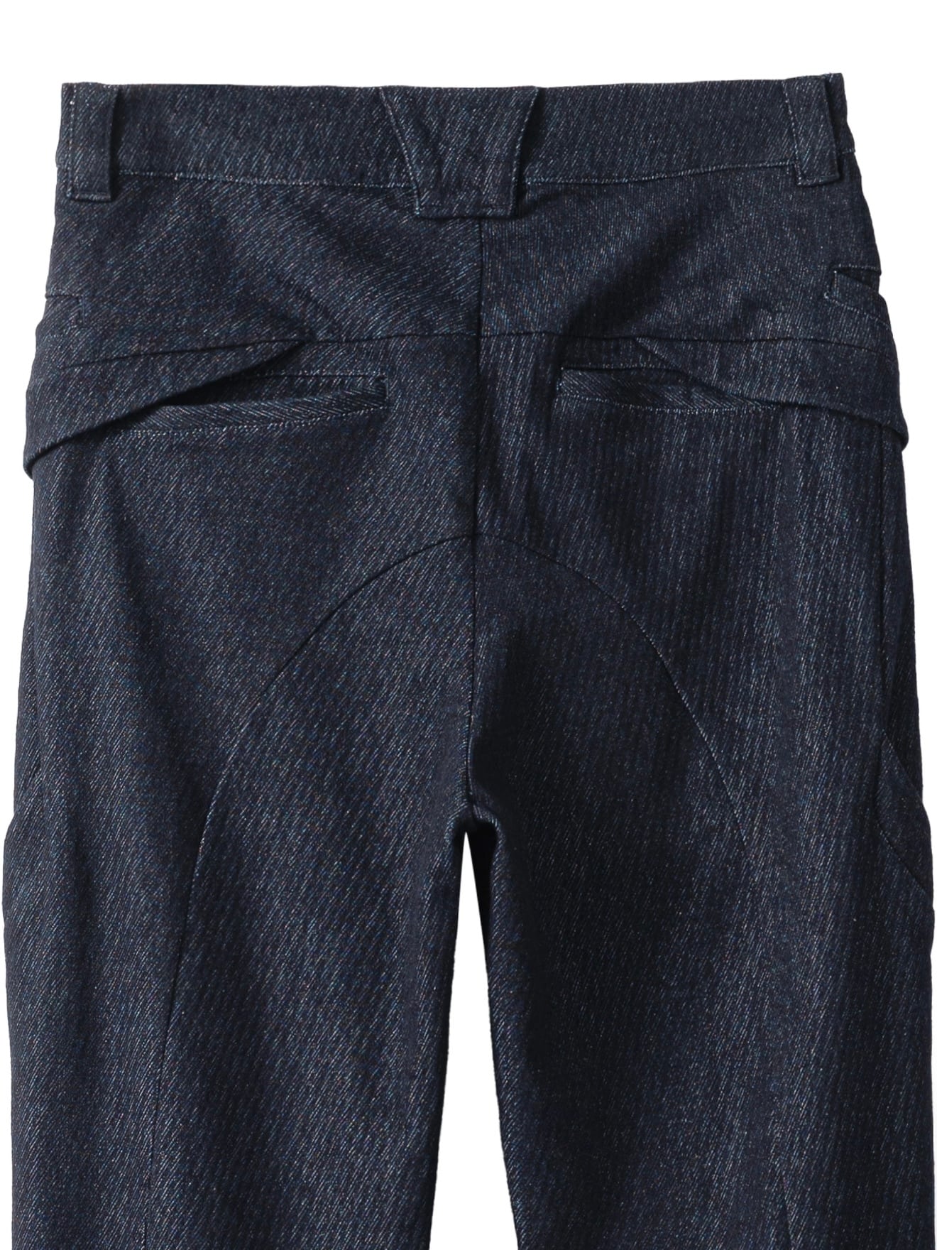 太ももから臀部にかけては、曲線的なポケットのパイピング装飾が施され、視覚的な造形感を強化しています。